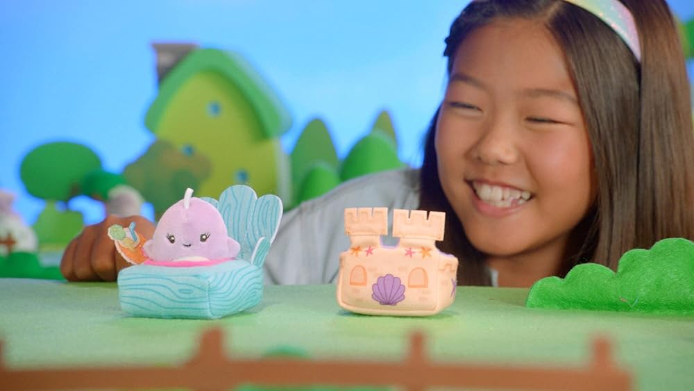 Hop into the Squishville plush toy world with the Mini Plush Beach Accessory Set. This adorable Squishville accessory set features your favorite Squishmallows plush characters in a mini 2-inch size. Add Naomi, the lavender narwhal, to your world of squish in its new 2-inch size. Squeeze your mini plush in and out of hilarious places in this adorable beach set, featuring beach-themed accessories to expand indoor and outdoor play. The two accessories are a cute sandcastle and a beach chair. The plush Squishville toy world is made with super-soft, high-quality materials, making it the coziest place on earth. Customize and decorate your Squishville plush toy world with the plush beach set! With vehicles, playsets, and your favorite Squishmallow plush characters, the Squishville plush world is bursting with possibilities!