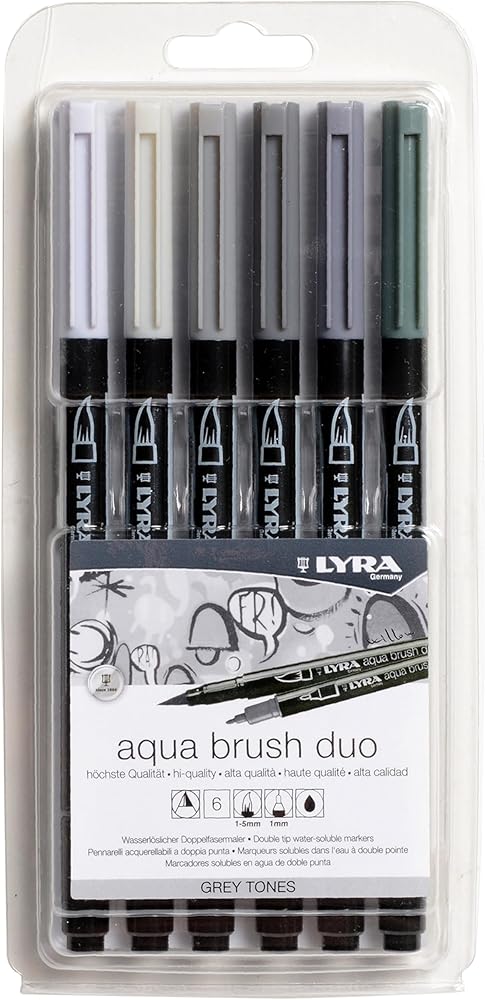 Lyra Aqua Brush Duo Brush Markers - Set of 6 Water-Based Brush Pens for Artists of All Ages - Dual Tip Markers for Fine Details and Wide Strokes - Durable Coloring Markers for Blending Effects
