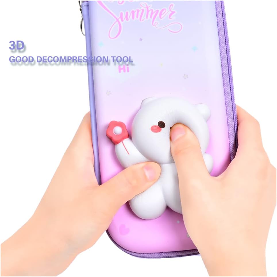 Children's Favorite: A bright pen bag, vivid 3D stereo cartoon by memory foam, fast rebound, is a gift for kids Birthday/Children's Day. The recommended minimum age is 3 years old.