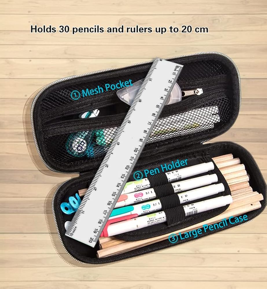 High Quality Material&Accessories: The pencil pouch is made of high quality EVA material and waterproof nylon oxford fabric, super durable, light weight. The metal zipper puller and smooth zipper provide longer service life