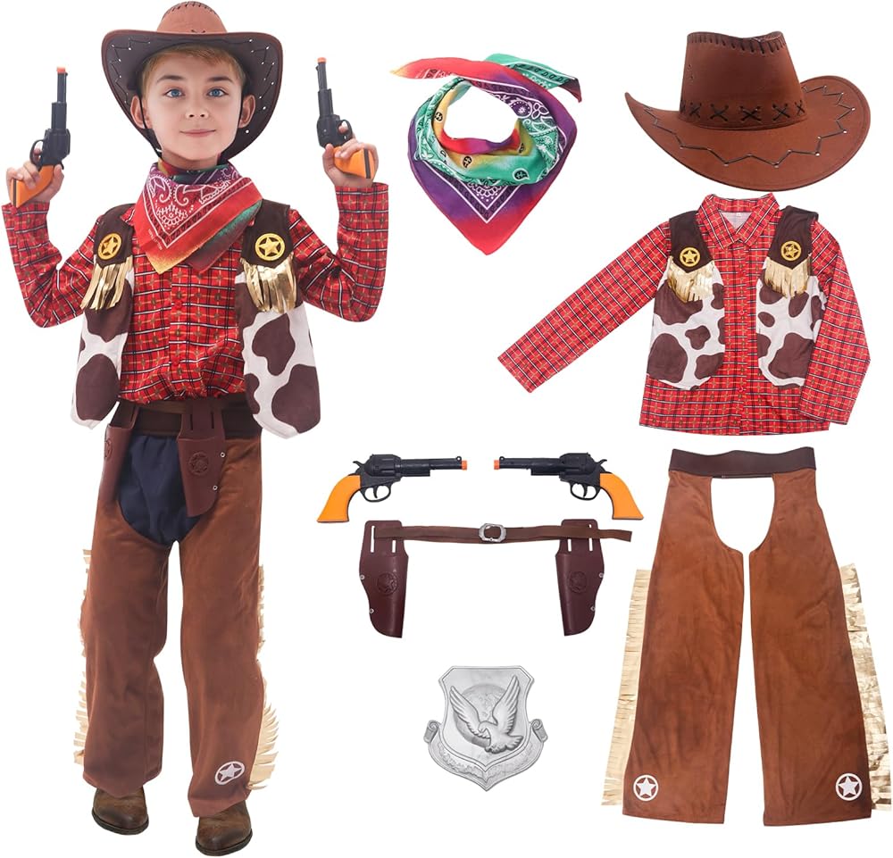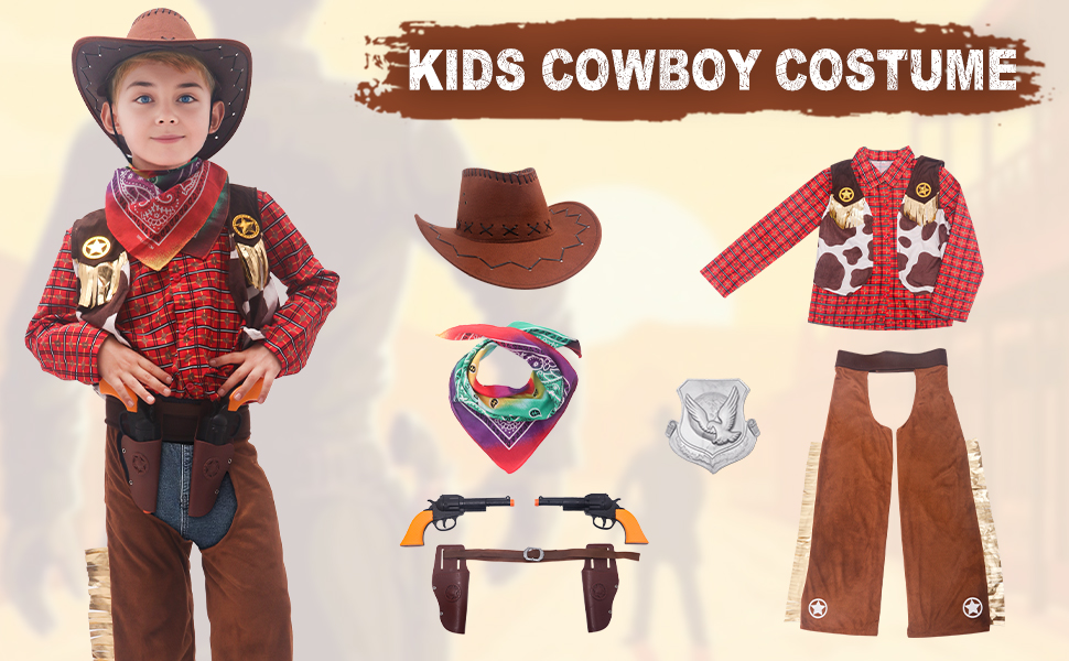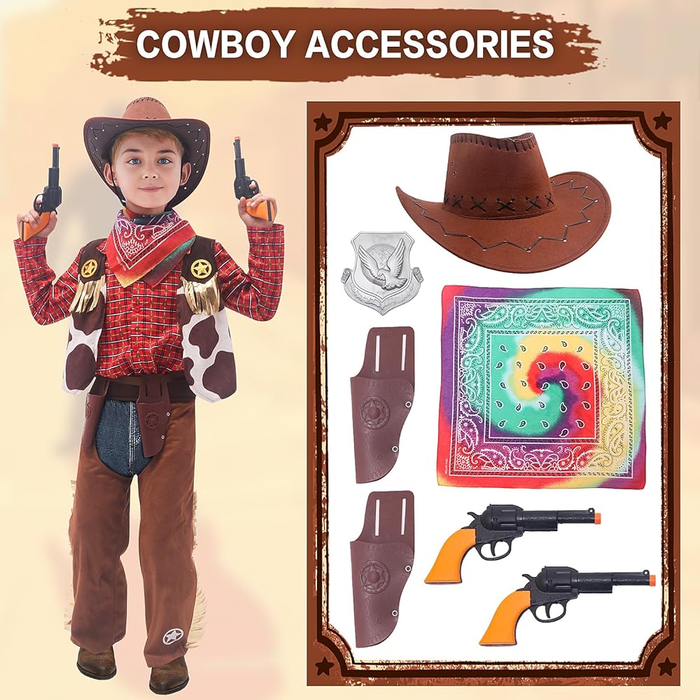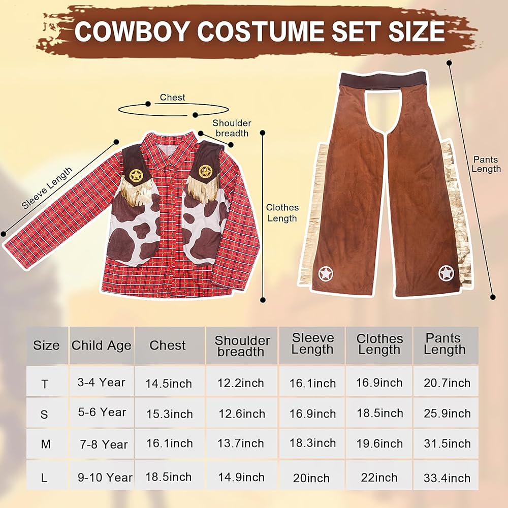 Size Description - There are four sizes of western cowboy dress up set. Suitable for children aged 3-10. Please refer to our size picture before purchasing. If your child's size data is between two sizes, it is recommended to increase one size.