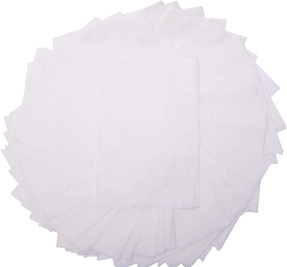 Taponukea 100 Sheets 7.9 * 11.8 inch Mulberry Paper Calligraphy Rice Handmade Paper Sheet for Craft DIY Warping Gift Adult Painting Practice About A4 Size