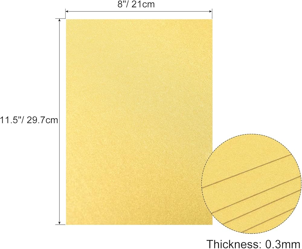 Wide: 8 inch/21cm; Length: 11.5 inch/29.7cm; Thickness: 0.3mm; Paper Weight: 92 lb/250gsm; Color: Light Green; Material: Paper; In the package of: 25 Sheets x Double-Sided Shimmer Cardstock Paper.