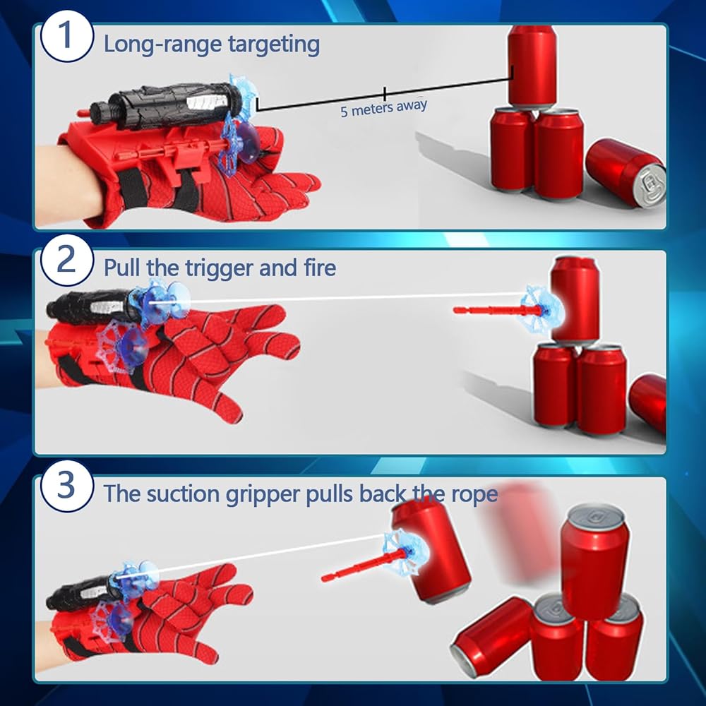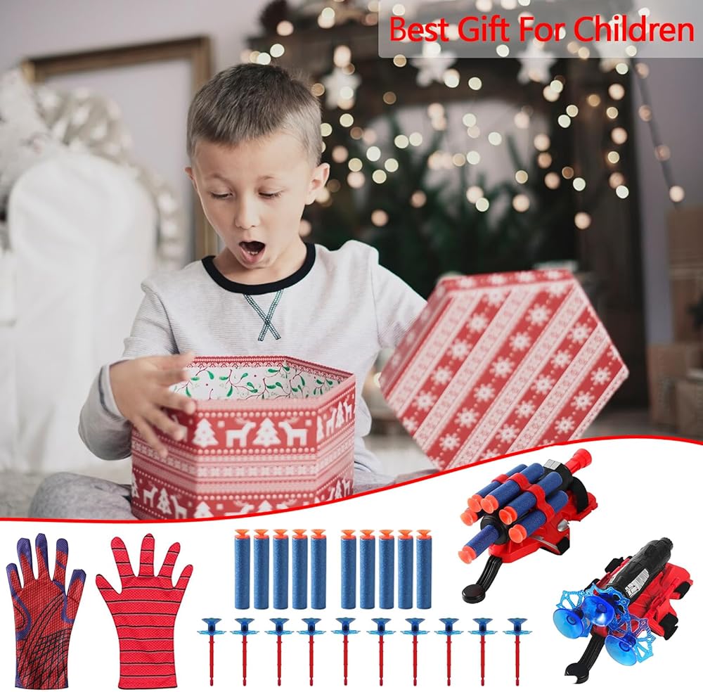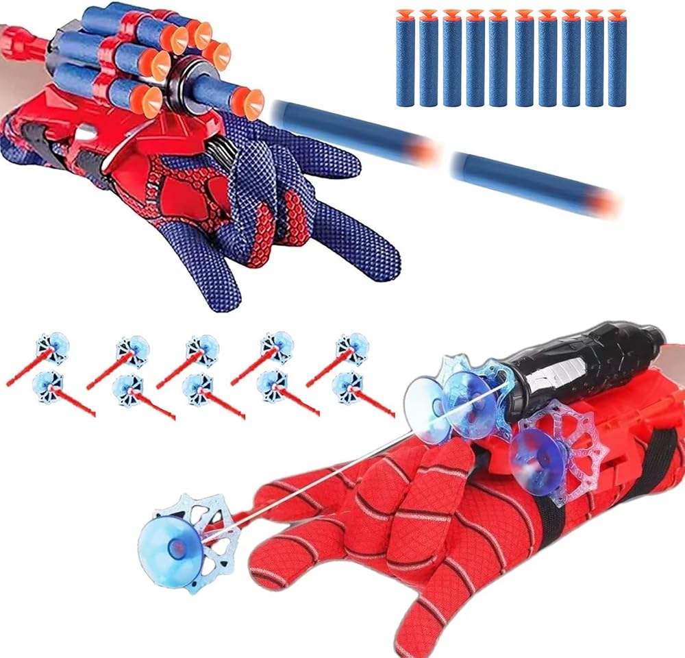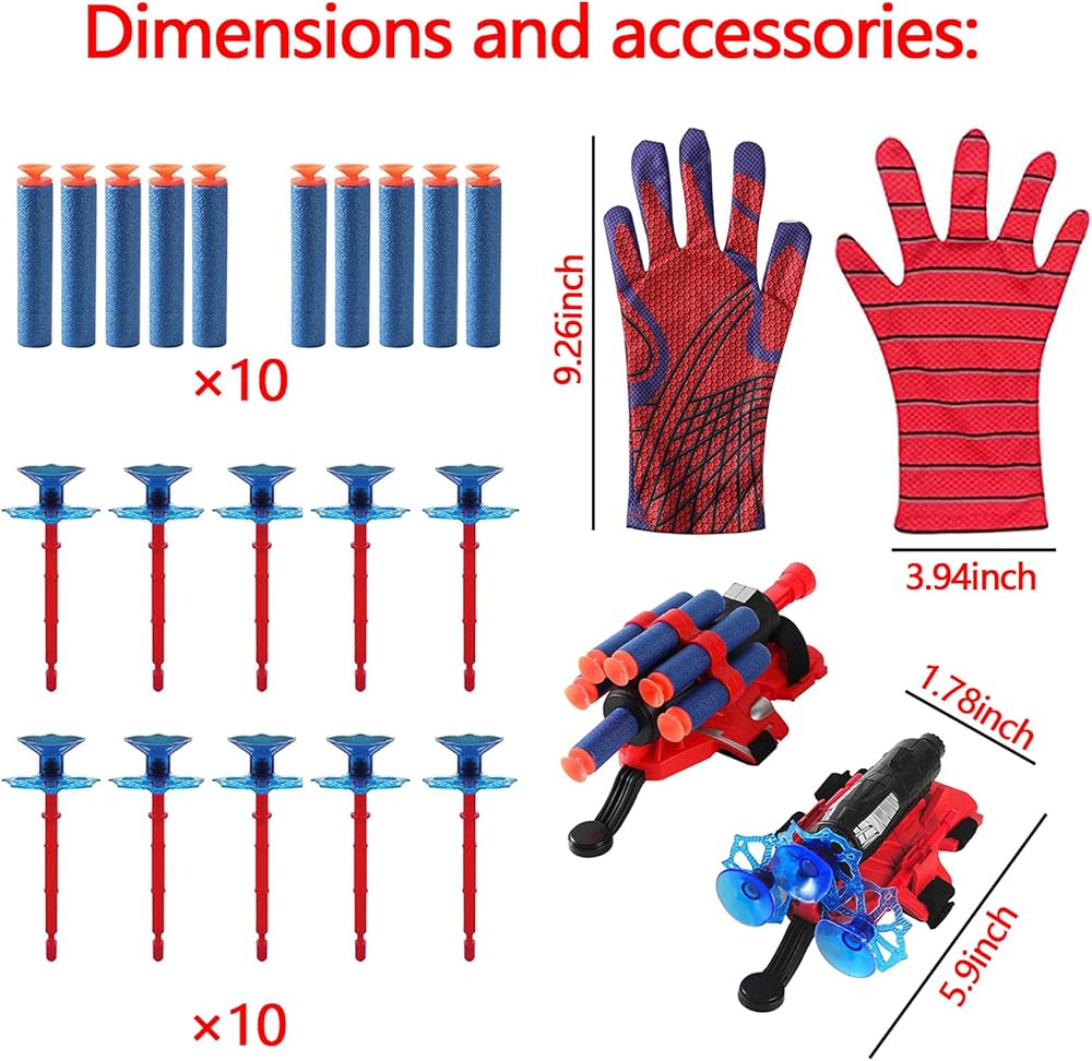 2 sets of equipment packaging, updated version, real experience to capture happy rotating and launching toys, the game is simple and easy to use, there is a suction cup on the top of the projectile body, harmless to the human body, you can start it in the glass or the ground, the suction cup on the ground or glass, it is very interesting, let the child become a cool little hero, and become a real online shooting game. The gift box allows you to have two different launch toys at the same time, and you can switch scenes at any time to play with educational toys. spiderman toys for boys: Our Spiderman toy launcher includes :2* gloves, 2*PCS launcher, 10* suction dart, 10*EVA soft projectile dart, 1* spinning thread, flexible wrist strap adjustment, when your child wears this spider glove, he will feel like a hero launcher. The transmitter brings a cool childhood world to children, which can increase children's interaction and let them grow up happily. Video creativity: The newly upgraded gameplay of this launcher can be used for long-distance shooting, picking up objects in the air, and truly experiencing the pleasure of capturing in the game. It can also stimulate children's imagination. Kids might like to play with kids. They imagine themselves as a superhero and play role-playing games with their friends using our popular boy superhero toys. BEST GIFT: This Cyber Shooter launcher is loved by kids, perfect for birthday parties, kids gifts, superhero gifts, Avengers toys, superhero toys, superhero gifts, and can be used with any superhero. Inspire hero worship in children. Perfect service: If you receive a damaged product, take a photo and contact the seller or Amazon for a replacement or return. Missing parts can also be replaced free of charge! If you are satisfied with our products, you are welcome to share your shopping experience and good products with other customers