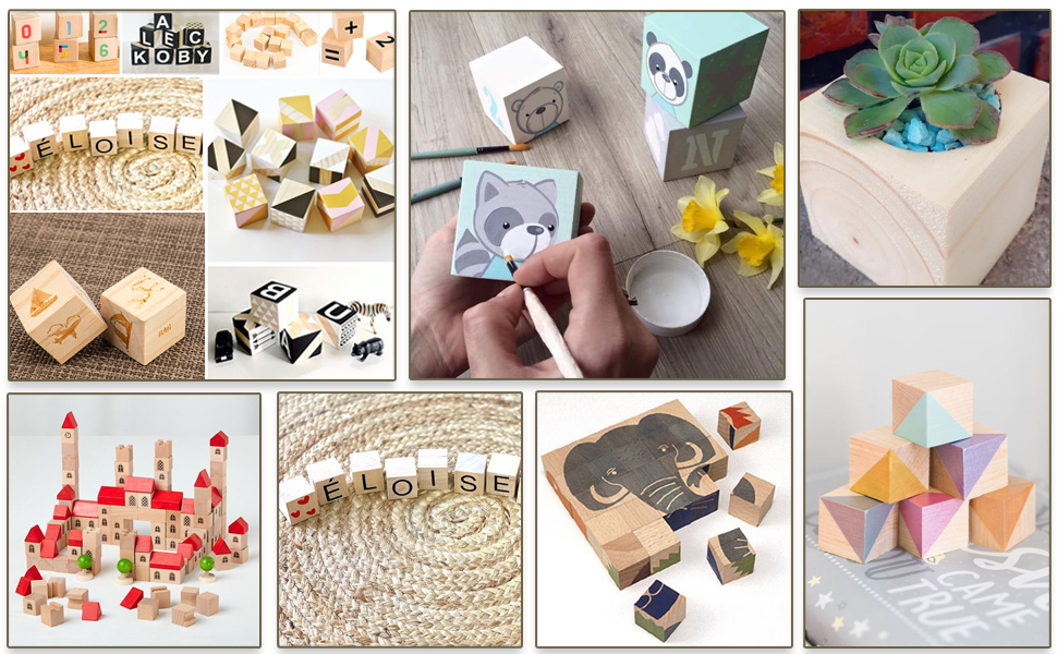 Unfinished Wooden Blocks: The clean wood cubes have been professionally polished many times, and the surface is smooth and delicate, beautiful and stylish, It's the perfect wooden cubes for laser engravers