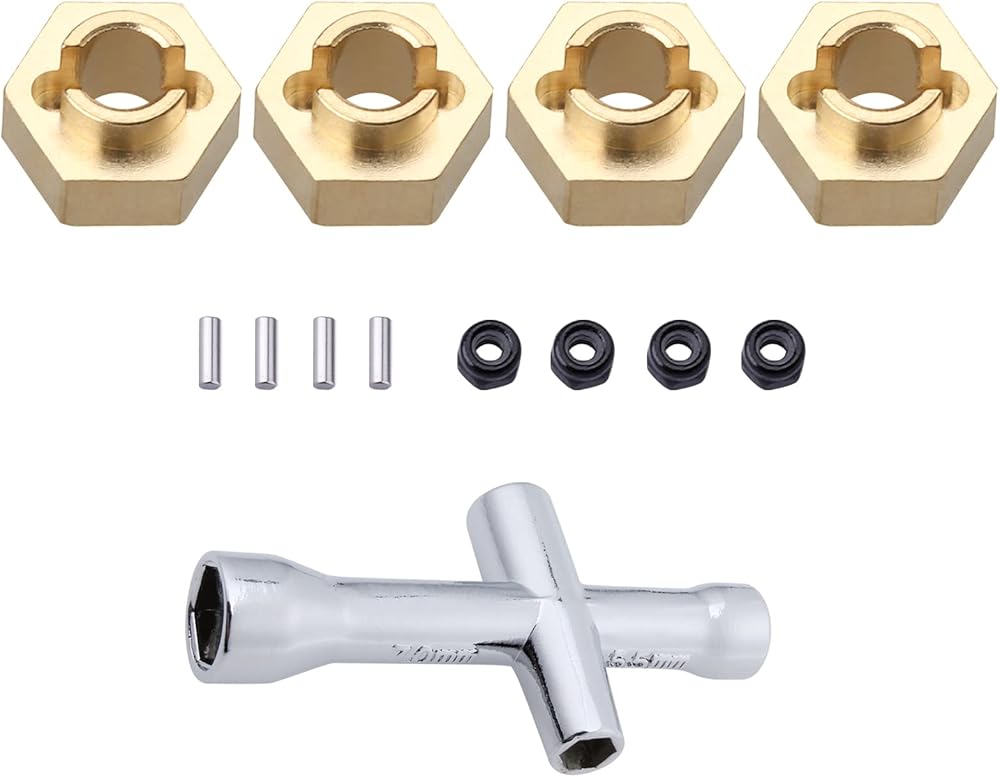 Brass Wheel Hex Hubs & Locknuts for Axial SCX24 1/24 RC Crawler Car Truck AXI90081 Upgrades Parts