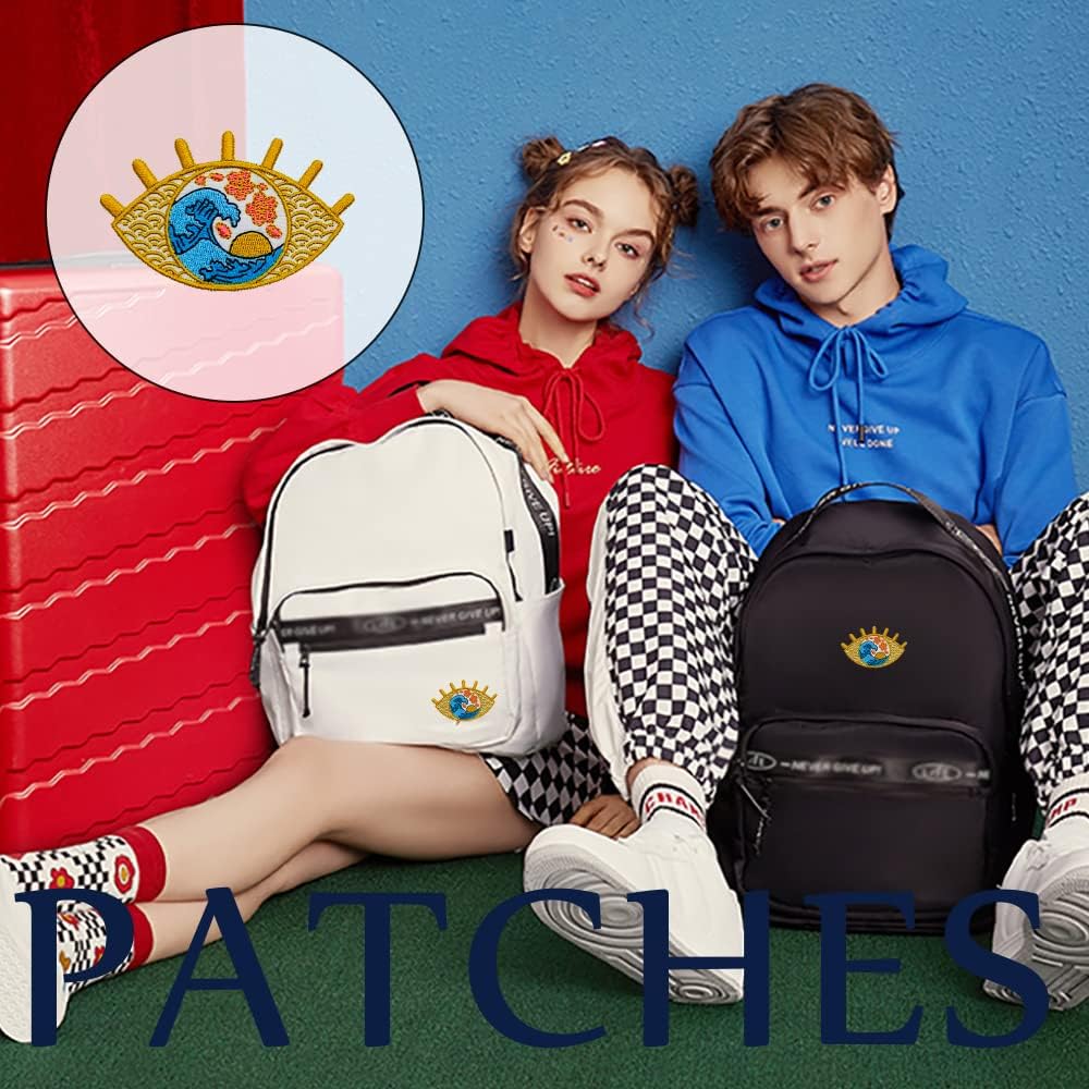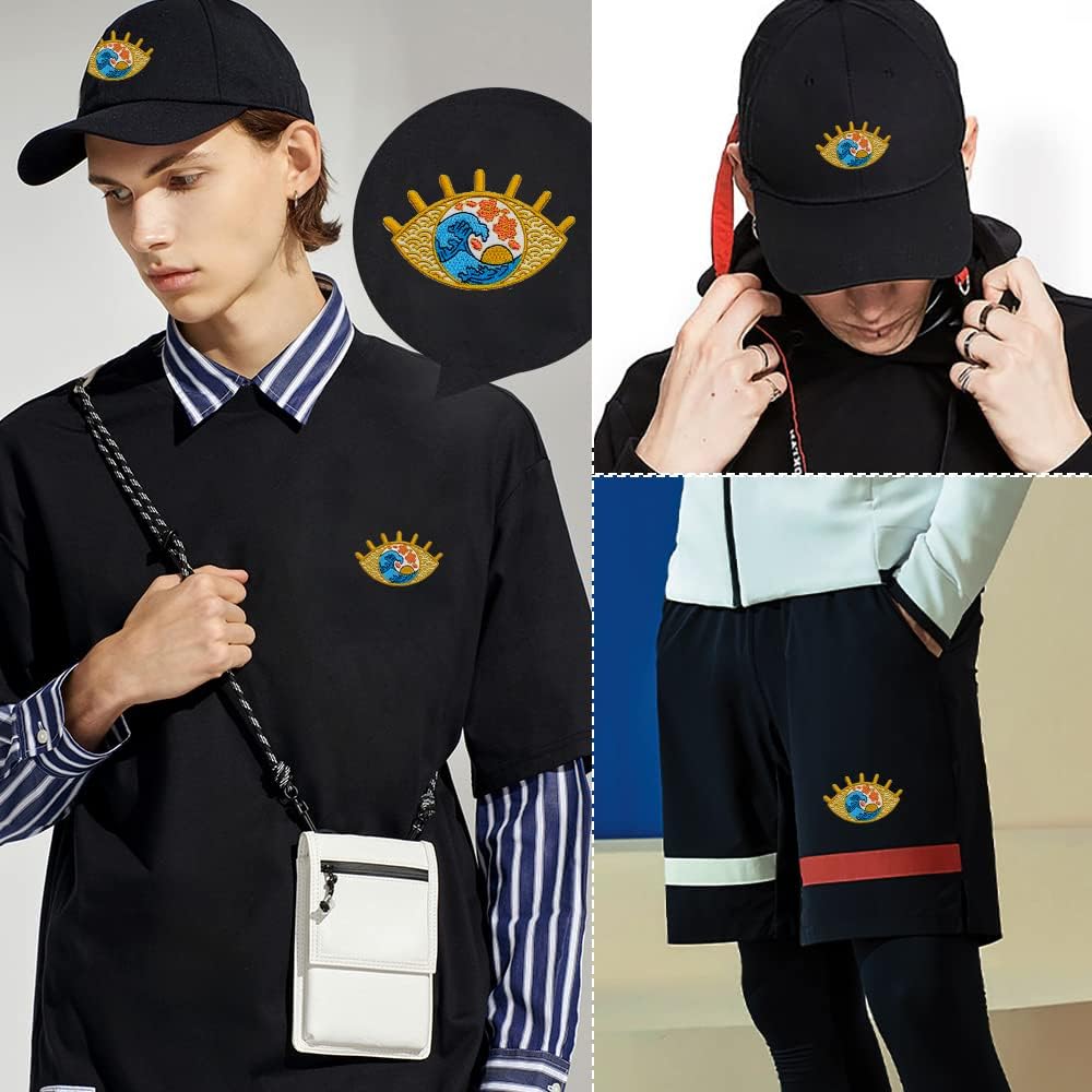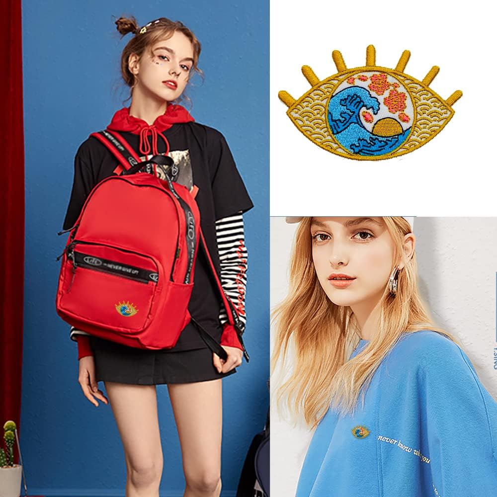 Iron On Embroidered Patch, Great Wave in Eye Patch - Cool Punk Embroidered Applique Badge Iron On/Sew On DIY Clothing Accessories, Perfect for Backpack, Clothes, Hats & Jeans