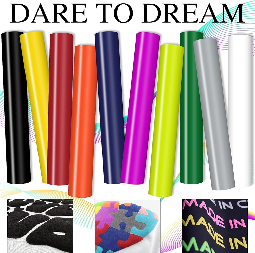 Puff Vinyl Heat Transfer 3D- Puff HTV Vinyl Assorted Colors 10 Sheets 12"x 10" Puff Heat Transfer Vinyl Puff HTV for T Shirt Compatible with Cricut Air or Maker
