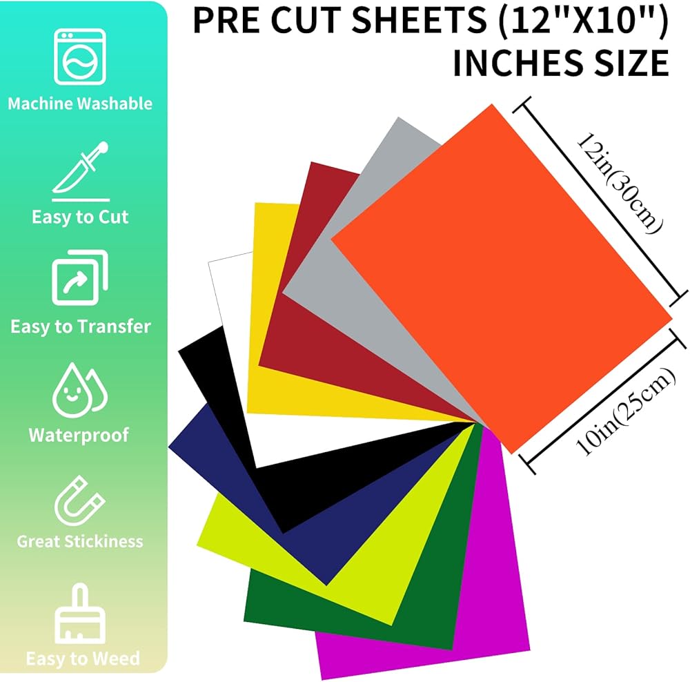 Packaging: The package has 10 sheets heat transfer vinyl, and the size is 10inch x12inch. Please feel free to contact us for any dissatisfaction.