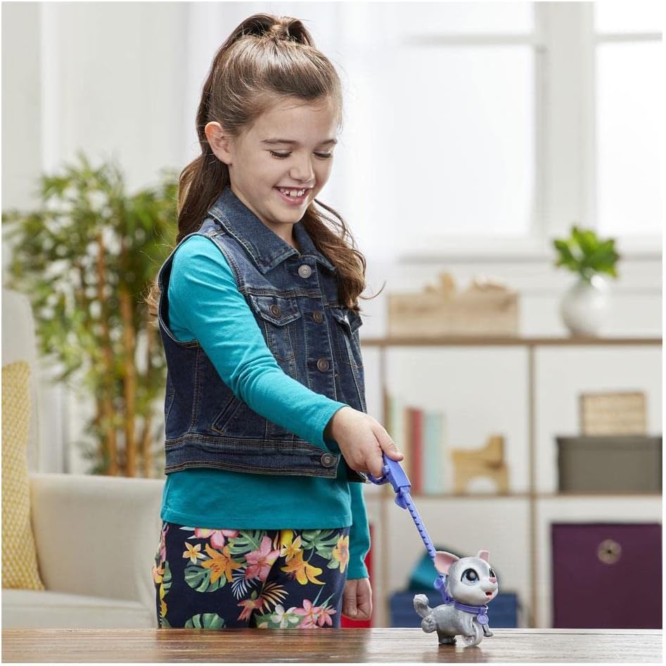 As any pet walker knows, pets sometimes need to pee. This pup comes with a short leash for tabletop walks and a bottle you fill with water to give him a drink. Of course, after quenching his thirst, he'll need to go! Just lift his tail and he pees! (Be sure to clean up after him – it's the polite thing to do. ) Whether you walk him by himself or with other Walkalots, Peealots, or Poopalots pets, you're sure to have a great time feeding your thirsty walker and helping him pee afterward! So, how about a stroll? furReal and all related properties are trademarks of Hasbro.