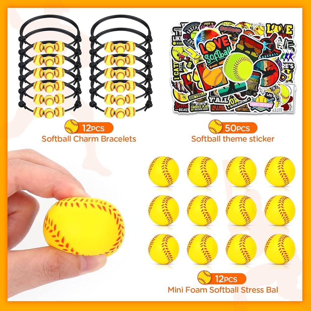 74 PCS Softball Party Favors Softball Charm Bracelets Sports Softball 1.6"Foam Ball 50 Softball Stickers Decorations Softball Wristbands Set for Softball Birthday Supplies Easter School Gift to Team