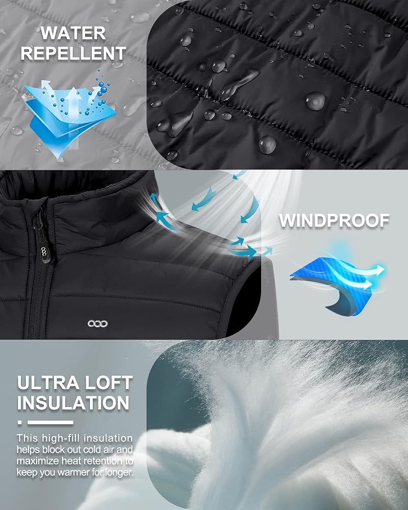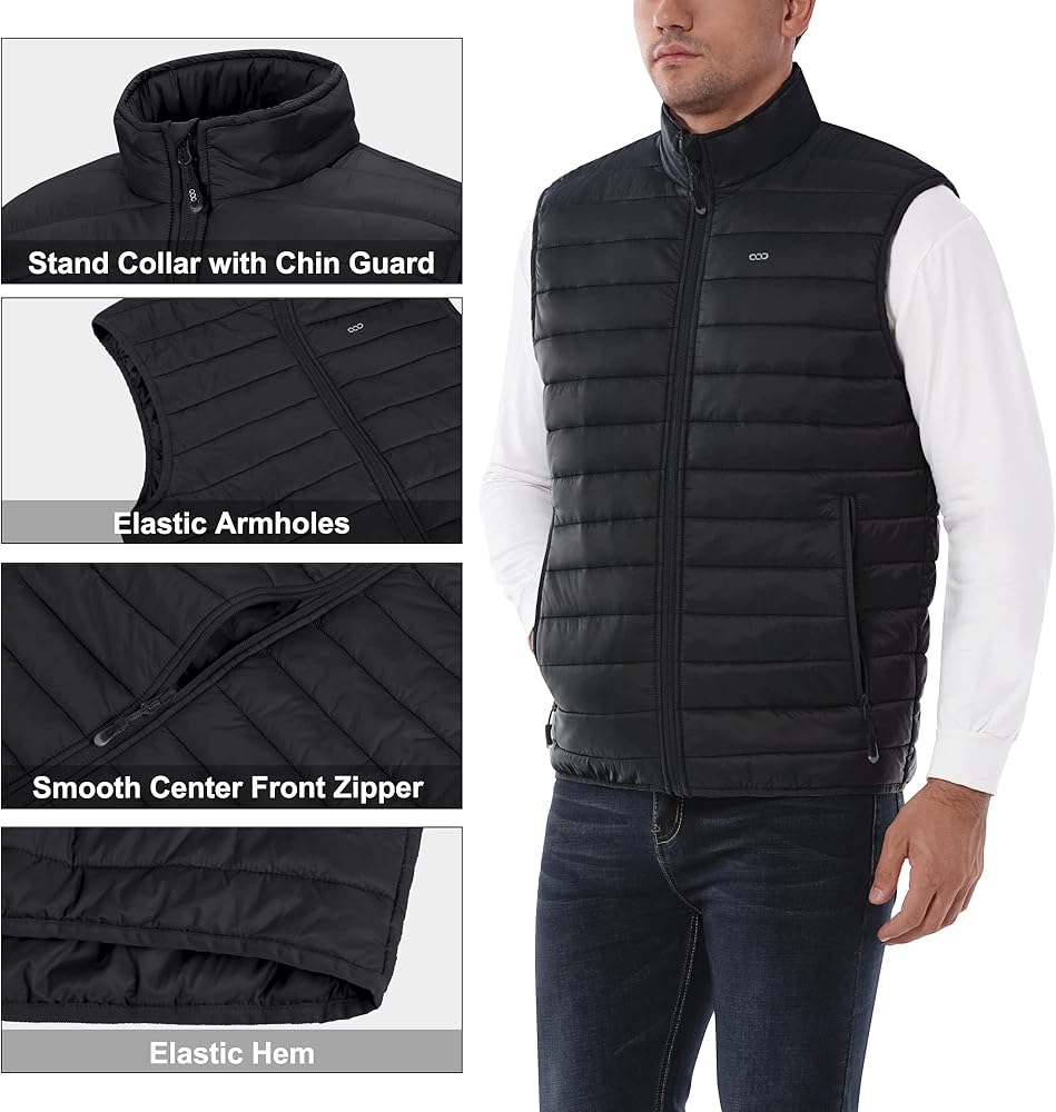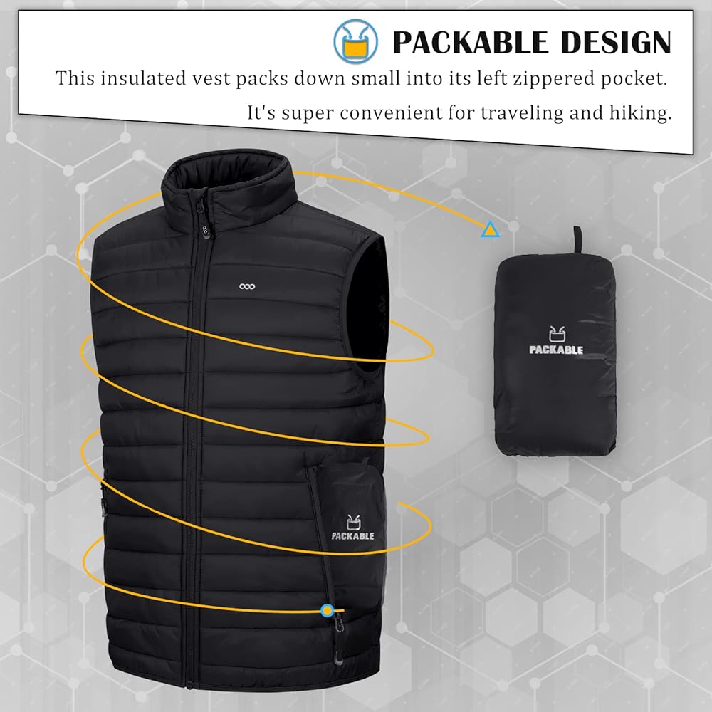WATER RESISTANT & WINDPROOF---This 33,000ft lightweight insulated puffer vest for men features ultra loft recycled thermolite insulation and wind & water resistant outer shell to provide strong protection against the elements and ultimate warmth & comfort to your body.