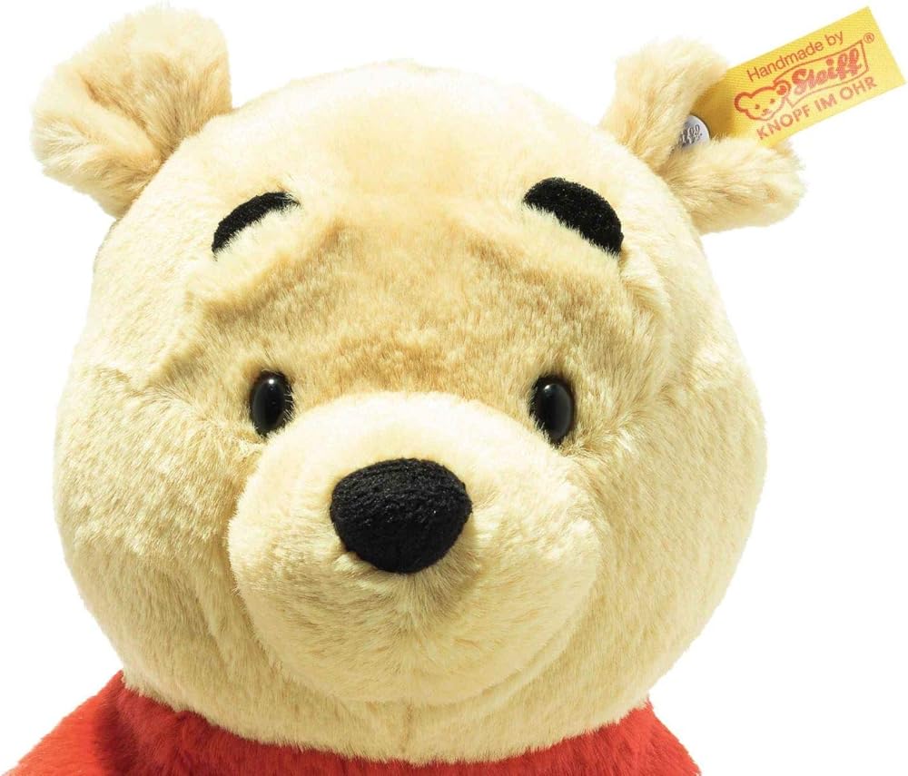 Measuring 11 inches tall, Steiff's iconic Winnie the Pooh is a cheerful little companion made of cuddly soft plush. He is wearing his signature red shirt that is fixed onto his body. The bean bags in his arms, legs and bottom allow him to sit comfortably. Pooh is the perfect little addition to any child's Disney collection!