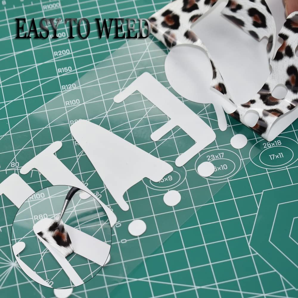 Easy to Cut & Weed :PABUES Leopard Print htv will save your time which you may waste on each image or letter, because you can cut and weed easily through the designs just right.The Leopard Print htv is sensitive to temperature and pressure, which can be heat transferred on any t-shirt easily.