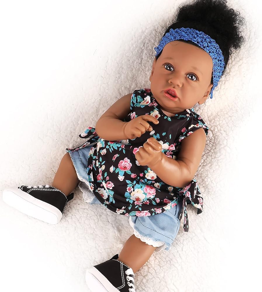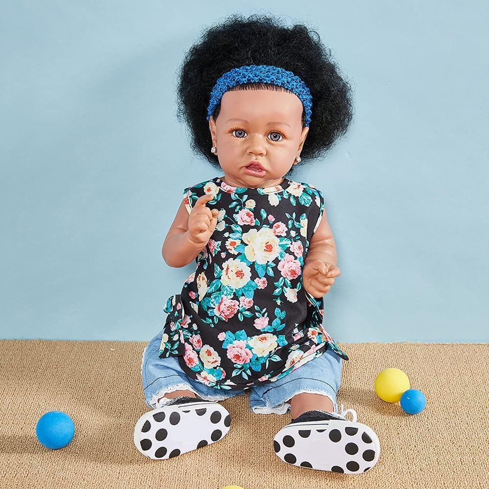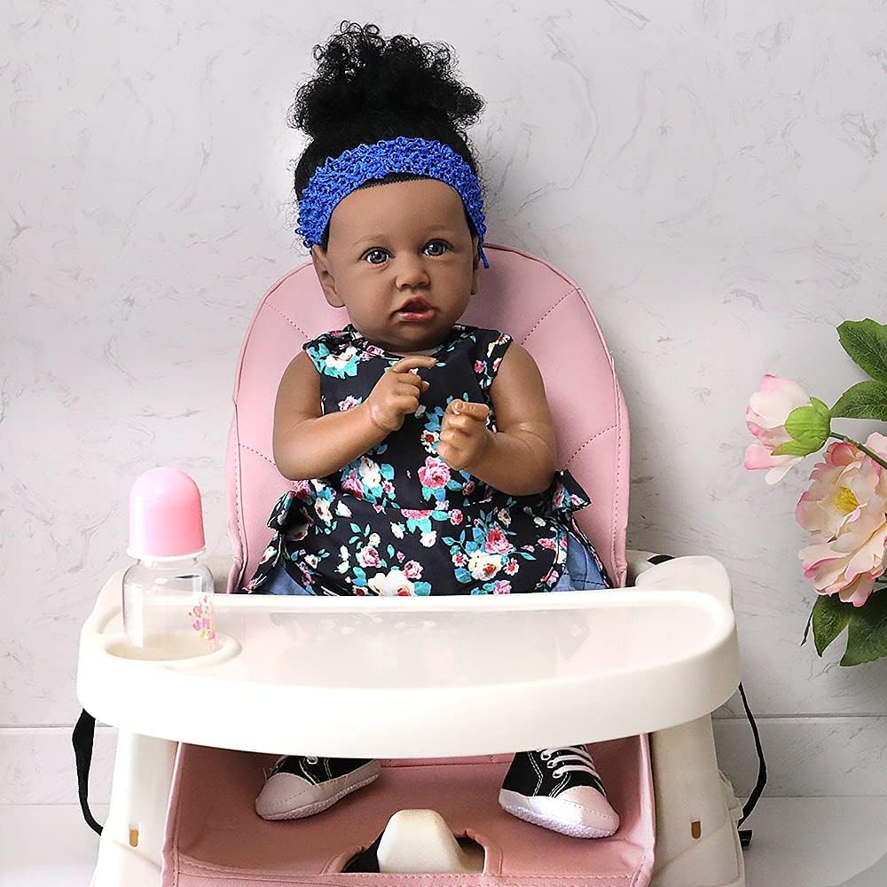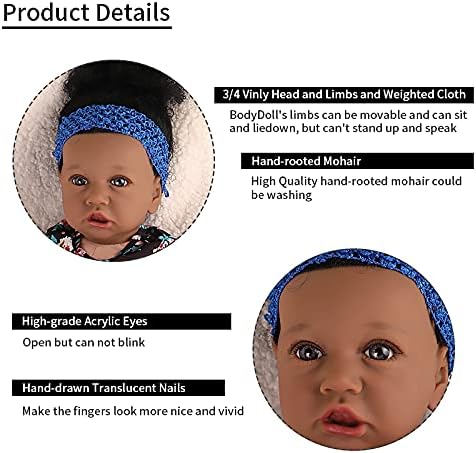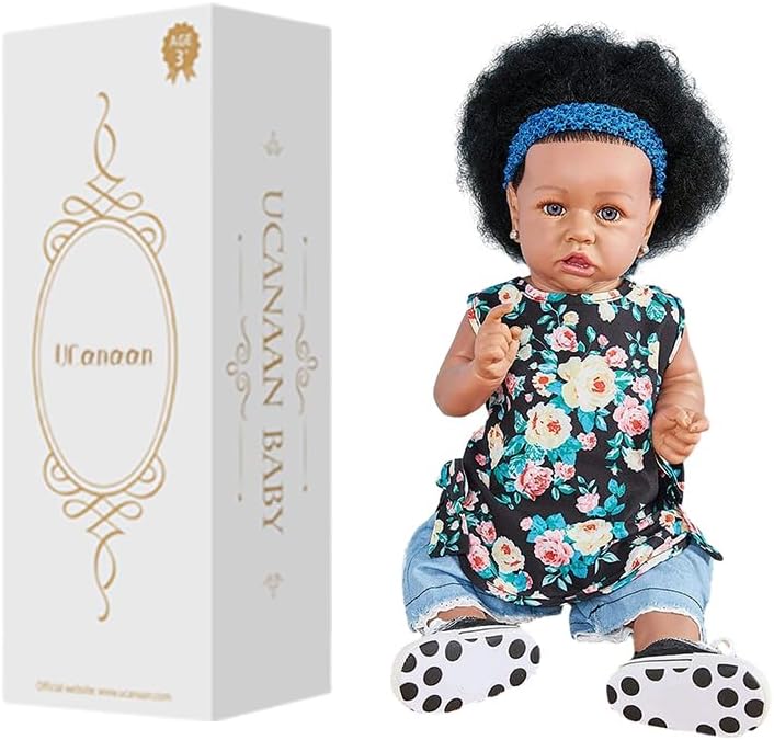 UCanaan Lifelike Reborn Baby Dolls with Soft Body 22 Inch Black African American Realistic Girl Handmade Weighted Baby Dolls Best Toddler Gift Set for Ages 3+ Best Gitfs for Girls Christmas Birthday
