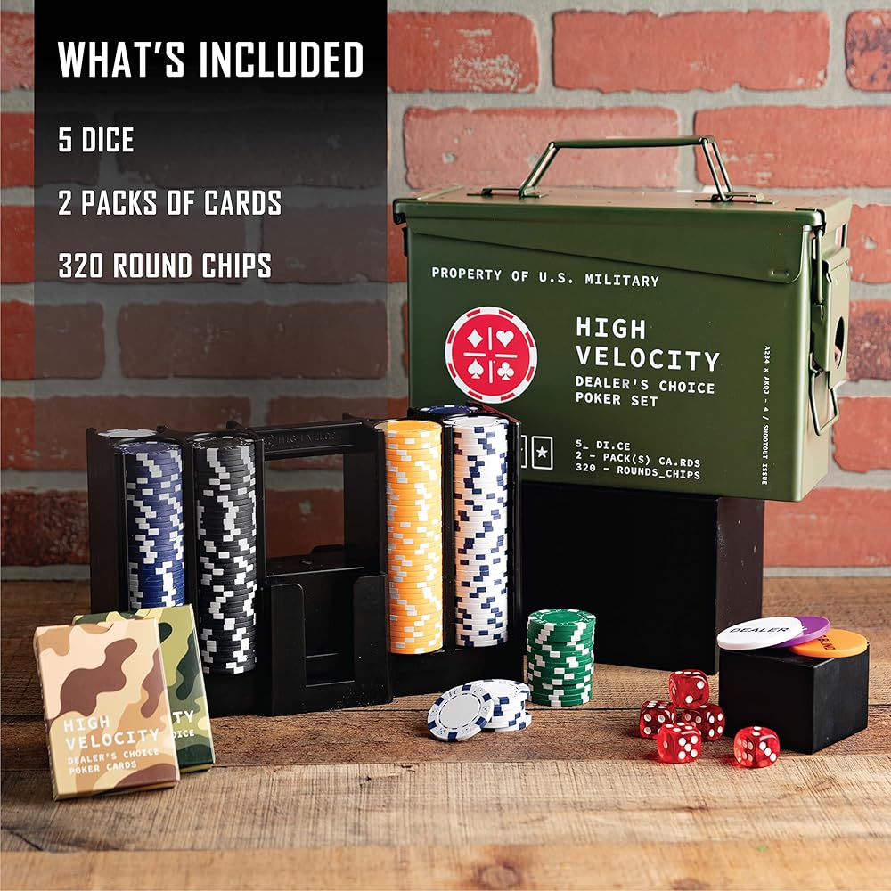 UNIQUE POKER SET: Present your gaming set with class. Real tactile box filled with all you need for any card game mission. Poker Chips, 2 decks of cards and blind chips. All neatly stored in a slide out tray tucked in to the tactile box.