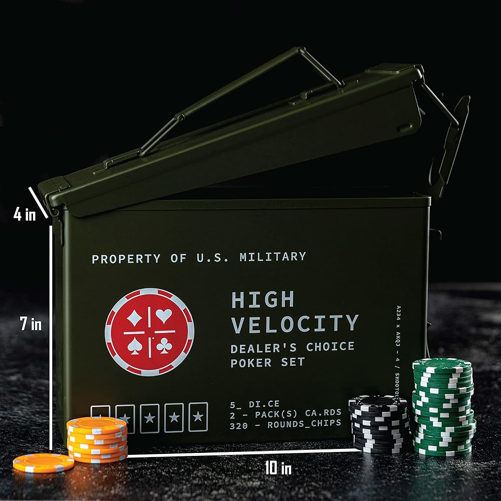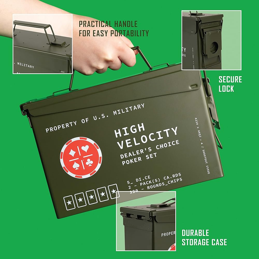 HEAVY DUTY TACTILE BOX: Tactile box with hinged top and carry handle for mobile ops. Signature print and messaging makes a bold statement and attests to your high caliber profile. Flip open the box lid, and your poker set is waiting to be unleashed. All neatly stored in a slide out tray conveniently holding all your chips cards and accessories.