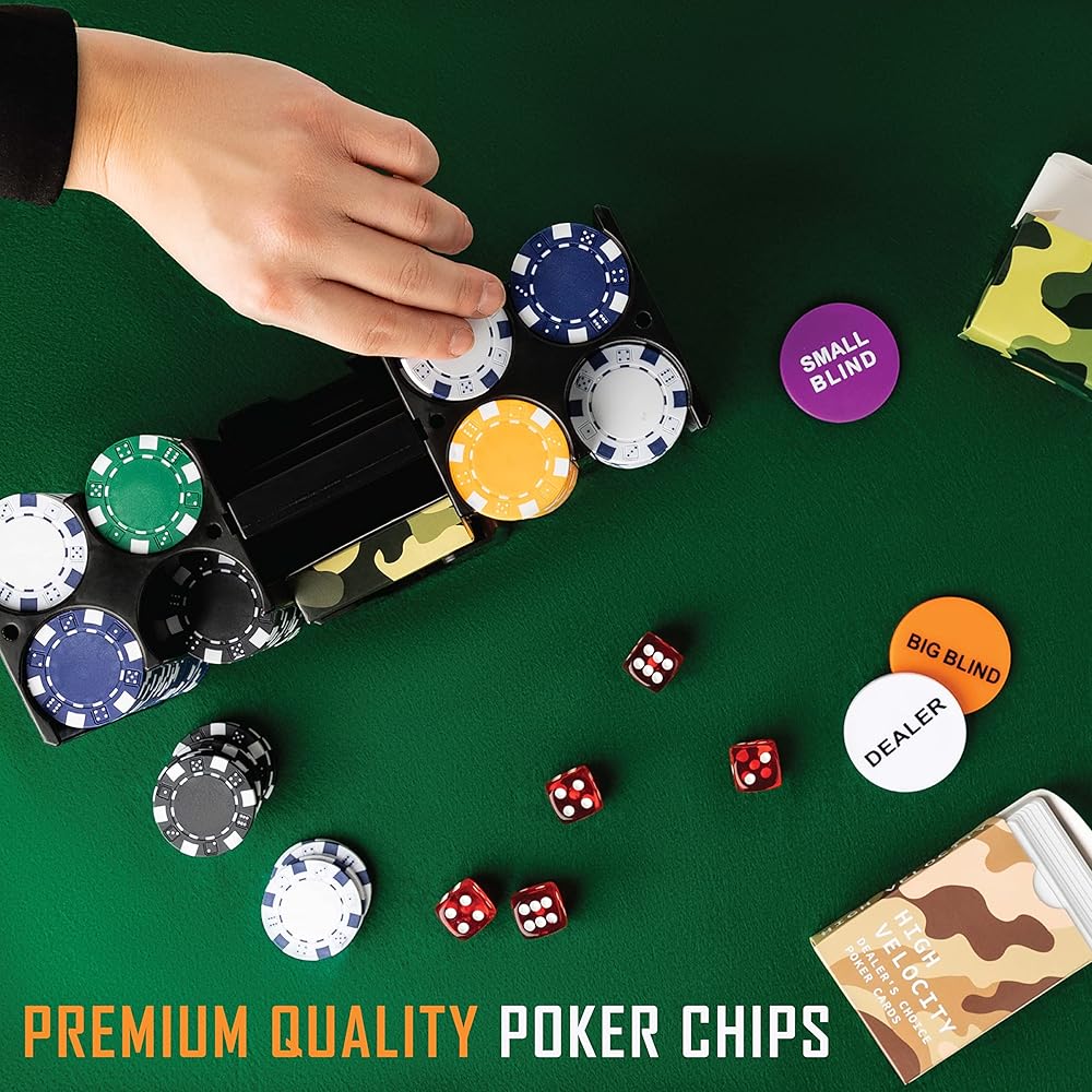 320 CHIPS: 11.5 gram heavy weight poker chips. 5 colors for real time play.