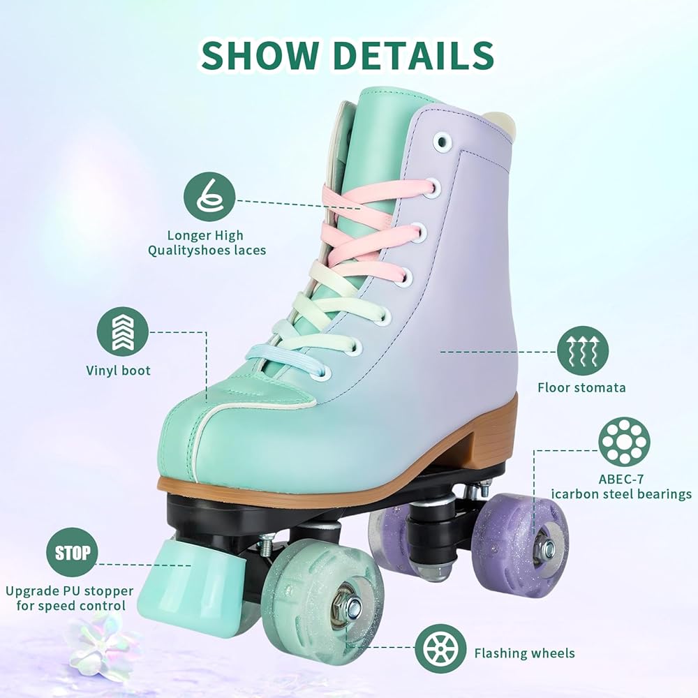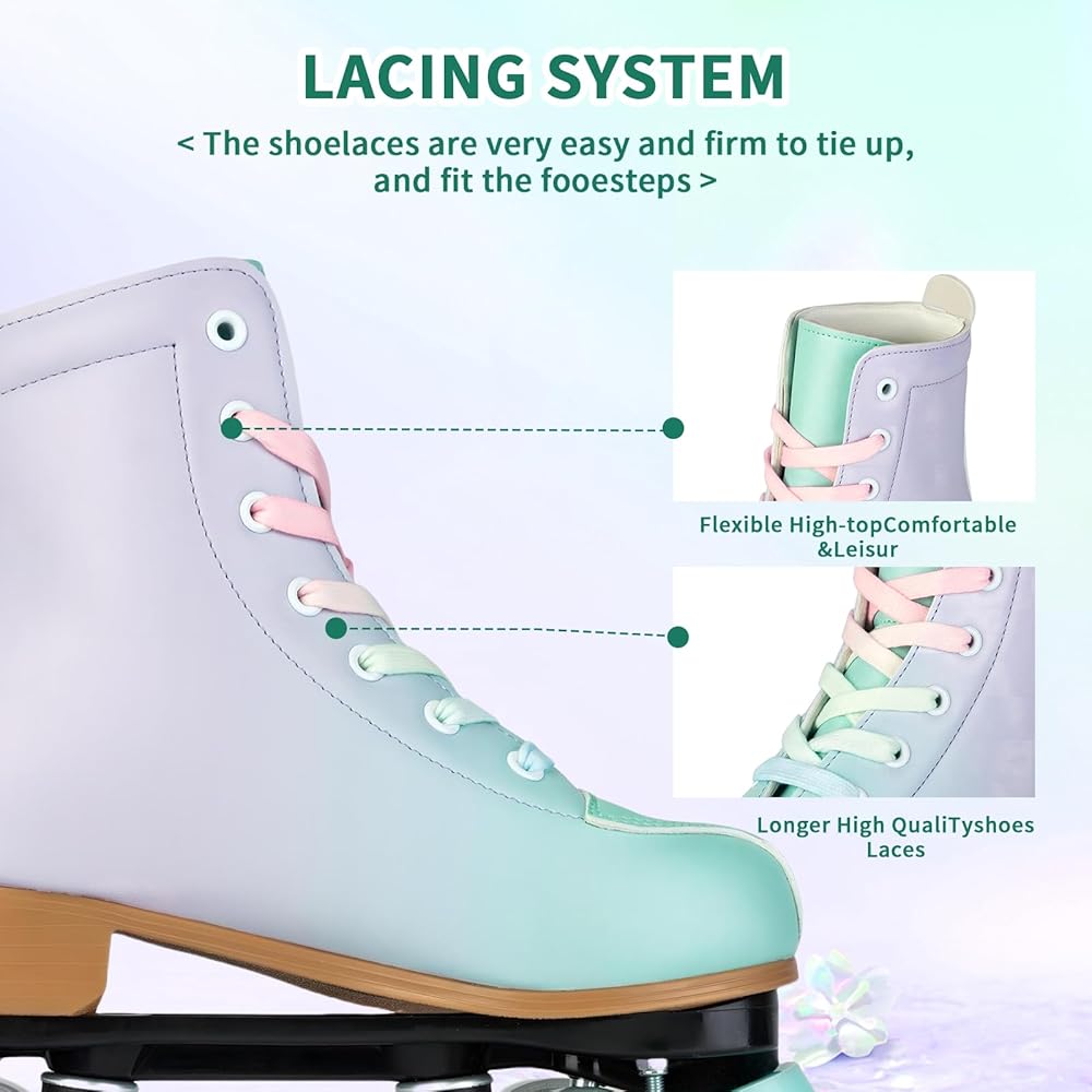 ❤ The classic double-row roller skates are safer than straight rollers and are ideal for beginners and boys and girls who want to easily learn roller skating.