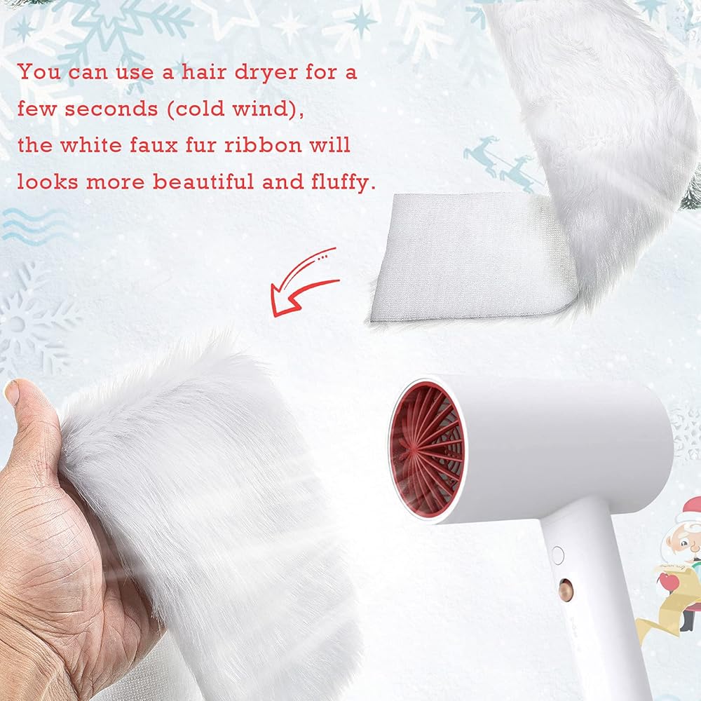 Tasteful decoration: you can trim these white fake fur ribbon as garland on your Christmas tree, just vacuum it off, fold it in half, and hot glue it so the back could not be seen, which can be tasteful decoration for Christmas tree, dressmaking and seasonal crafts, making you home full of Christmas joy