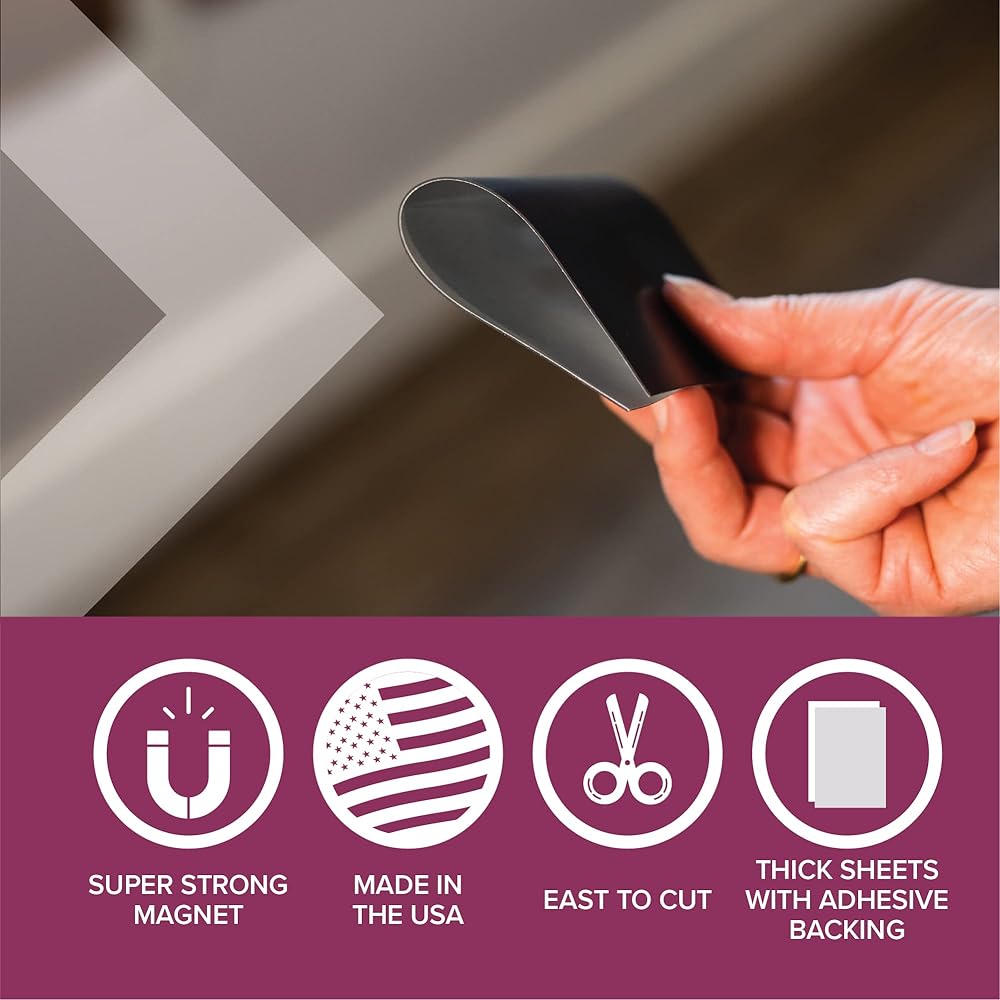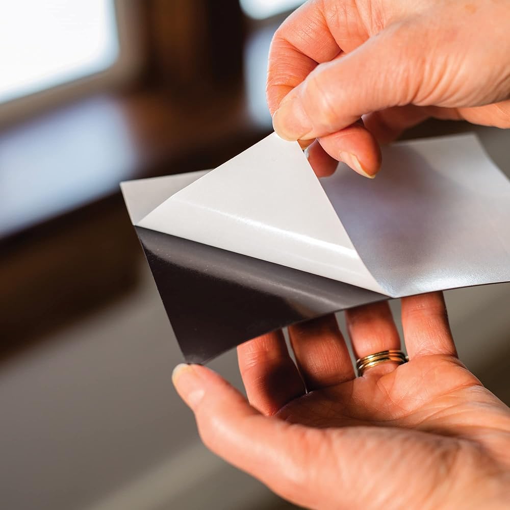 - Strong: These magnetic sheets with adhesive backing stay in place and sticks to a variety of surfaces