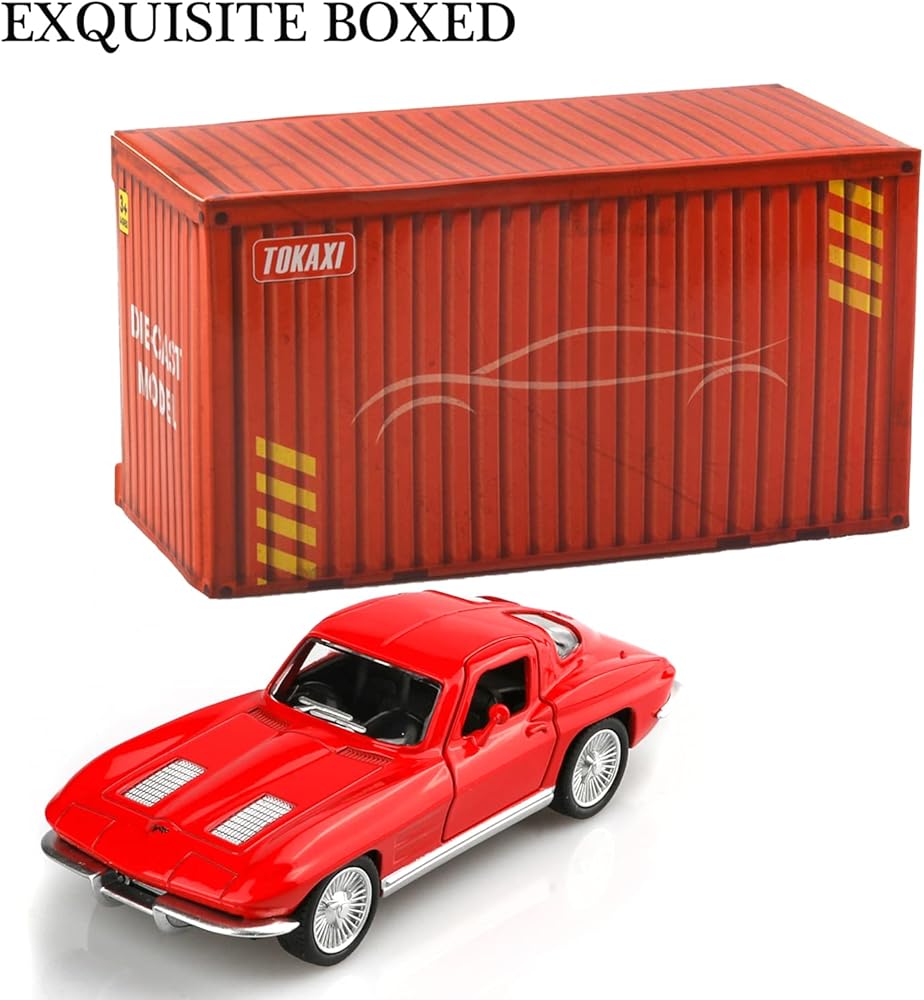 High-Quality Materials:The 1963 Chevrolet Corvette die-cast car is made of zinc alloy,plastic parts and rubber tires,making it safe for children to play with.It features detailed interior and exterior trim, and is very sturdy.