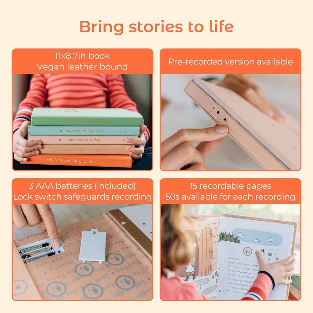 [The Perfect Gift] Parents, caregivers, grandparents, aunts, and uncles; with our technology, you can record your voice narrating the storybook, and your children can hear you even when you are not around and enjoy that special bond.