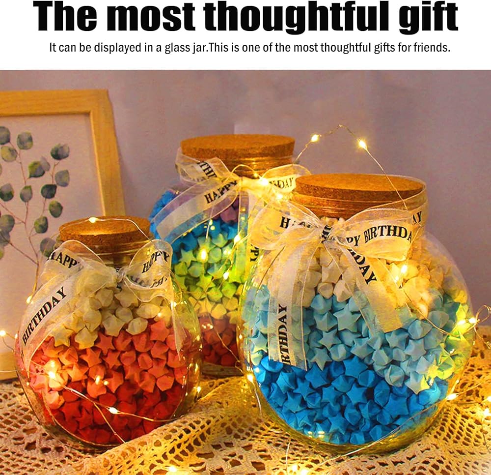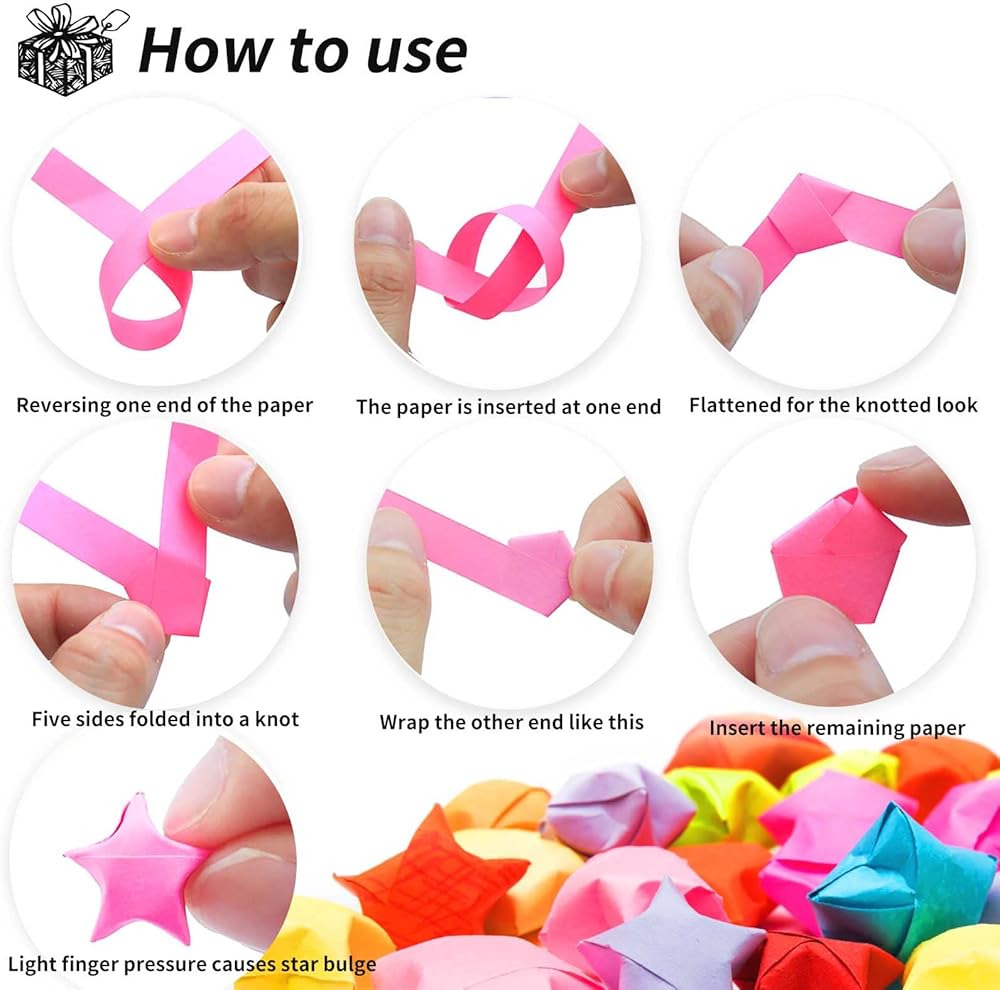 Widely used: The stars folded with stars origami paper suitable for many kinds of occasions Christmas, Halloween, New Year, Birthday, Mother's Day, Father's Day, Holiday, Baby Birth, Wedding,Valentine's Day , and can also be used to decorate your home, DIY projects, school presentations, enjoy the feeling of blessing.