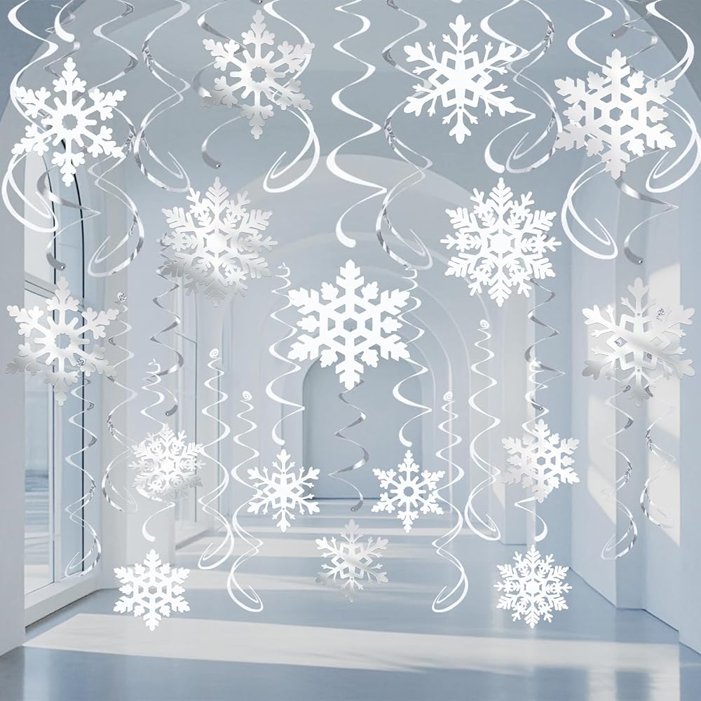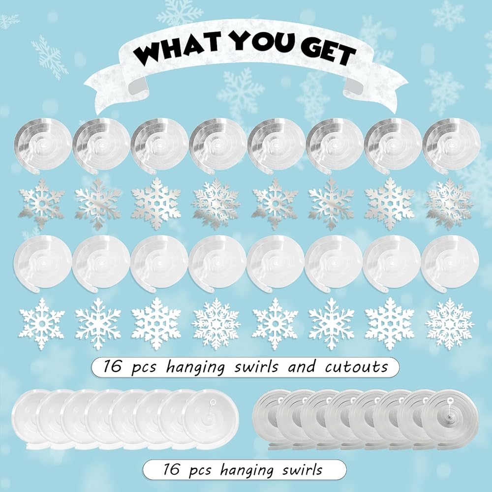 • ❄️EASY TO HANG: All snowflake cutouts has been assembled, each swirls has a plastic hook for easy hanging and removal. you don't have to do any assembly! Just hang these vivid snowflakes decor anywhere you like