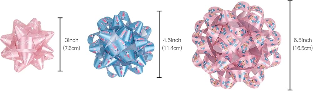 CHRISTMAS DESIGN: The gift bows come in 6 different Christmas designs: Santa Claus/ snowflake/ gift box/ snowman/ black plaid. The gift bow will add a fascinating touch to your package, making your gift shiny, high-end, exquisite, romantic and stand out from other gifts.