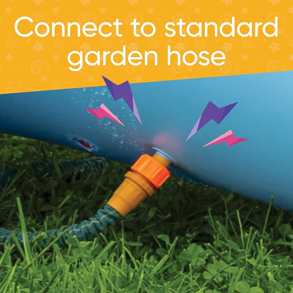 SEA-MPLE AS-SEA-MBLY: The Hearthsong sprinkler is simple to assemble. Quickly and easily inflate it with dual-stage valve (pump sold separately), connect it to a garden hose, then stake it to the ground. And you're all set for seaworthy adventures in your backyard
