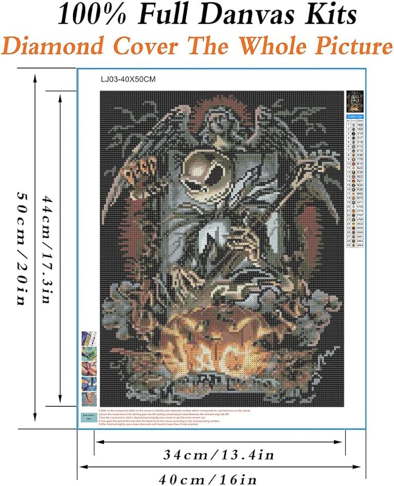 ADLOX DIY 5D Diamond Painting by Number Kits for Adults and Kids Jack Skellington 16X20 Painting Cross Stitch Full Drill Crystal Rhinestone Embroidery Pictures Arts Craft for Home Wall Decor Gift 3