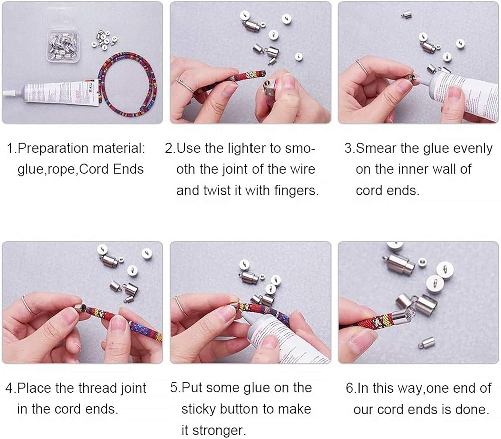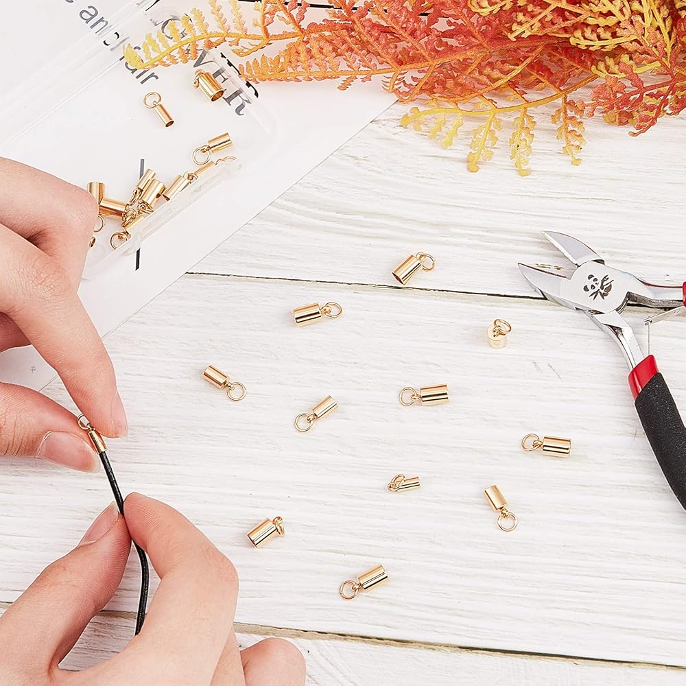 Easy To Use: You can add them to necklaces, bracelets and so on, simply put some glue on the bottom of the cord ends, then adhere to leather or cords. The opening of the end cap is perfect for using with thicker stringing materials.