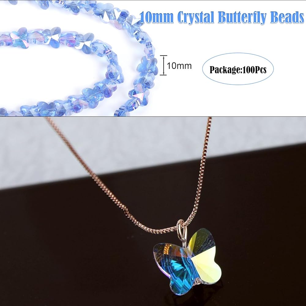 ✦Size Information:Our crystal butetrfly glass beads are about 10mm/0.39in in size,Thickness:5mm/0.2in,about 100 beads in total.Plated with AB effect, with multiple facets, the right size beads better help you decorate jewelry and other items.