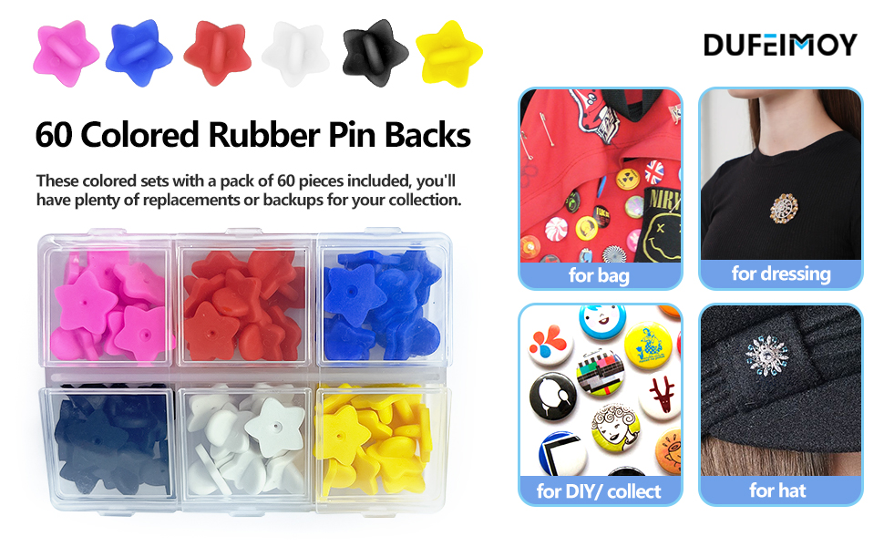 ※ What's more, these pin backs come with a transparent box, making them easy to carry and store. With 60 pieces of colored pin backs included, you'll have enough for replacement or DIY projects.