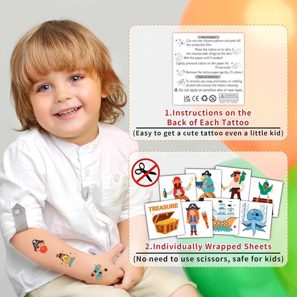 • 【50 PCS Pirate Tattoos for Kids Party】Are you looking for some surprise kids party supplies without spending a lot of money? Partywind tattoos is your perfect choice! These cute elements of our fake tattoos include various cartoon pirate that kids will like! No kids can refuse these colorful tattoo stickers!