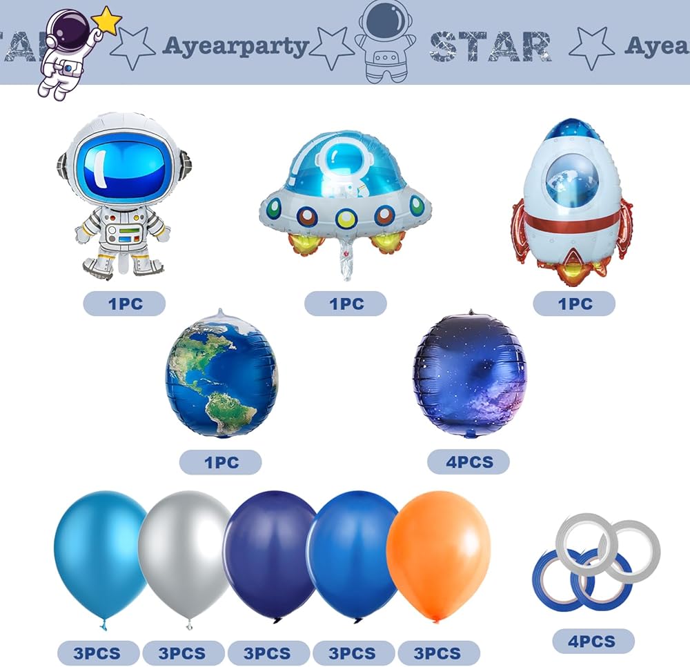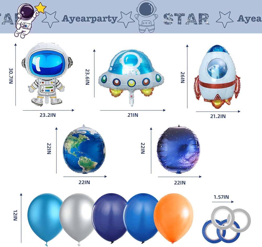 مجموعة كاملة - سوف تحصل على بالون رائد فضاء واحد و4 بالونات هوائية على شكل نجوم وبالون أرضي وبالون سفينة فضاء وبالون صاروخ و15 بالون ملون، بإجمالي 23 قطعة