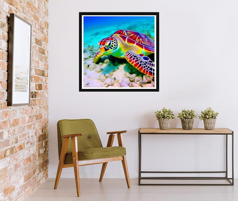 Rovepic 5D Diamond Painting Kits Turtles Animals Round Full Drill, DIY Paint with Diamonds Art Marine Life Crystal Rhinestone Cross Stitch for Home Office Wall Crafts Decorations 12×16 Inch