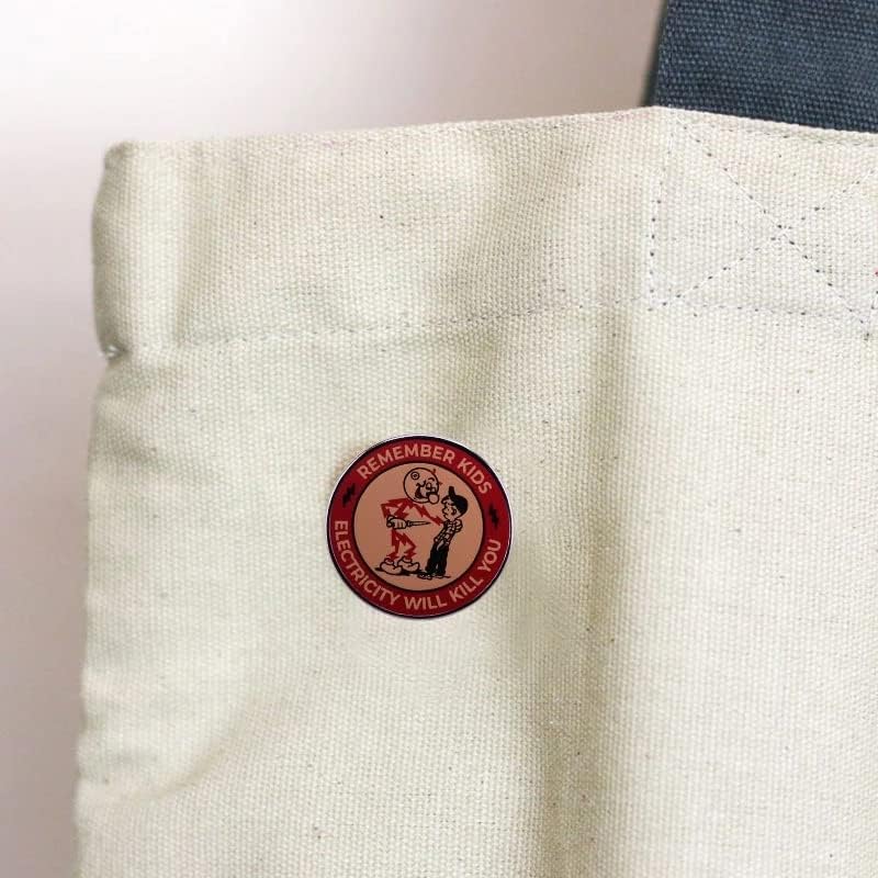 Remember Kids Electricity Will Kill You Brooch Pin Badge Reminder Warning Brooch Warning Danger Sign Enamel Pins Funny Metal Lapel Pin Badge for Backpacks Clothes Bags Jackets Hat Jewelry DIY Decor