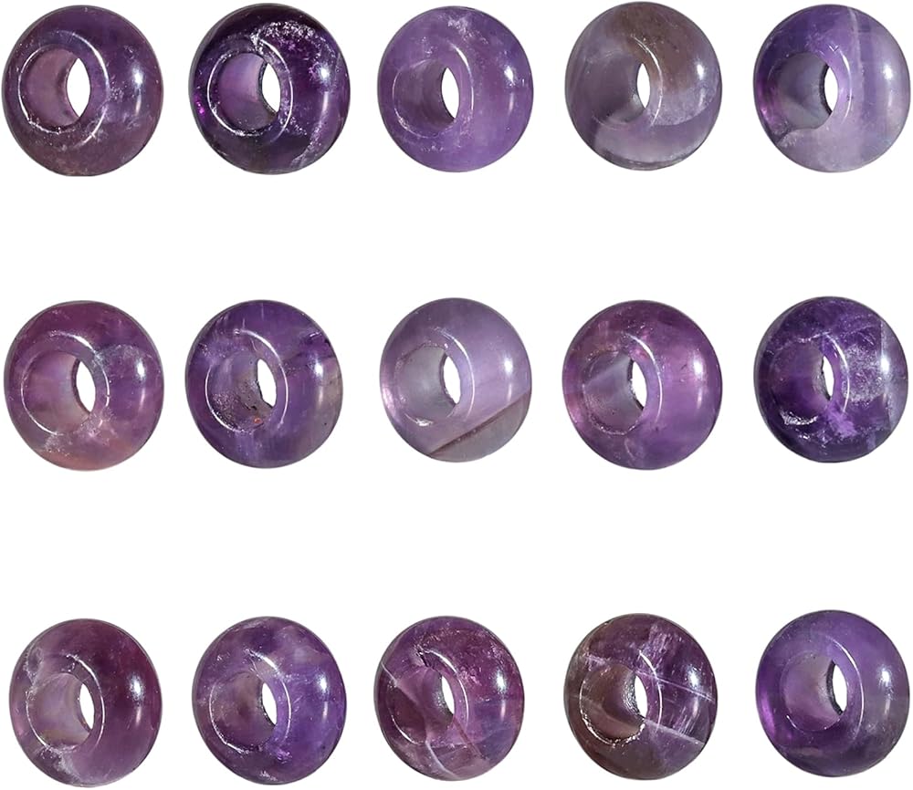 Large Hole Rondelle Beads Size: approx 8 x 14 mm, 6 mm hole; Weights about 2 gram per piece; Package Included: Pack of 25 large hole beads, comes with a grey velvet bag for gift ready. 6 mm hole size stone beads is perfect for leather, thick cords or other wrap material.