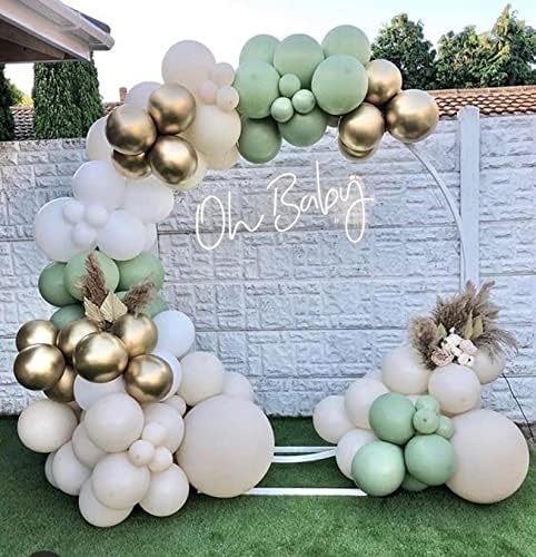Balloon Garland Arch Kit: 18In(Avocado Green 2pcs + Sandy White 2pcs); 10In(Avocado Green 30Ppcs + Sandy White 20pcs + White 15pcs); 5In(Avocado Green 25Ppcs + Sandy White 25pcs + White 15pcs + Metal Gold 20pcs).