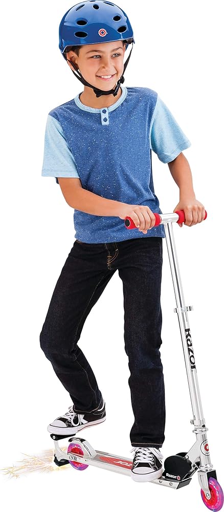 سكوتر Razor Spark+ Kick - عجلات مضيئة بإضاءة LED، وقضيب شرارة، وإطار من الألومنيوم خفيف الوزن، ومقود قابل للطي وقابل للتعديل