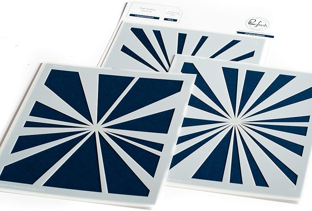 3-piece layering stencil set designed by Kaitlin Sheaffer.. Create a modern and colorful sunburst background with this A2 sized layering stencil set. The color combinations are endless when used with our 48 shades of premium dye inks. Use texture or glitter paste over top of a colored layer, or by itself for added dimension. Our high-quality stencils were designed as a modern basic to make A2 card designs easy & fun! Approximate Measurements: 4.25 x 5.25 inches. Buy Pinkfresh Studio Sunburst Layering Stencil Set at Michaels. com. Create a modern and colorful sunburst background with this A2 sized layering stencil set. Create a modern and colorful sunburst background with this A2 sized layering stencil set. The color combinations are endless when used with our 48 shades of premium dye inks sold separately. Use texture or glitter paste over top of a colored layer, or by itself for added dimension