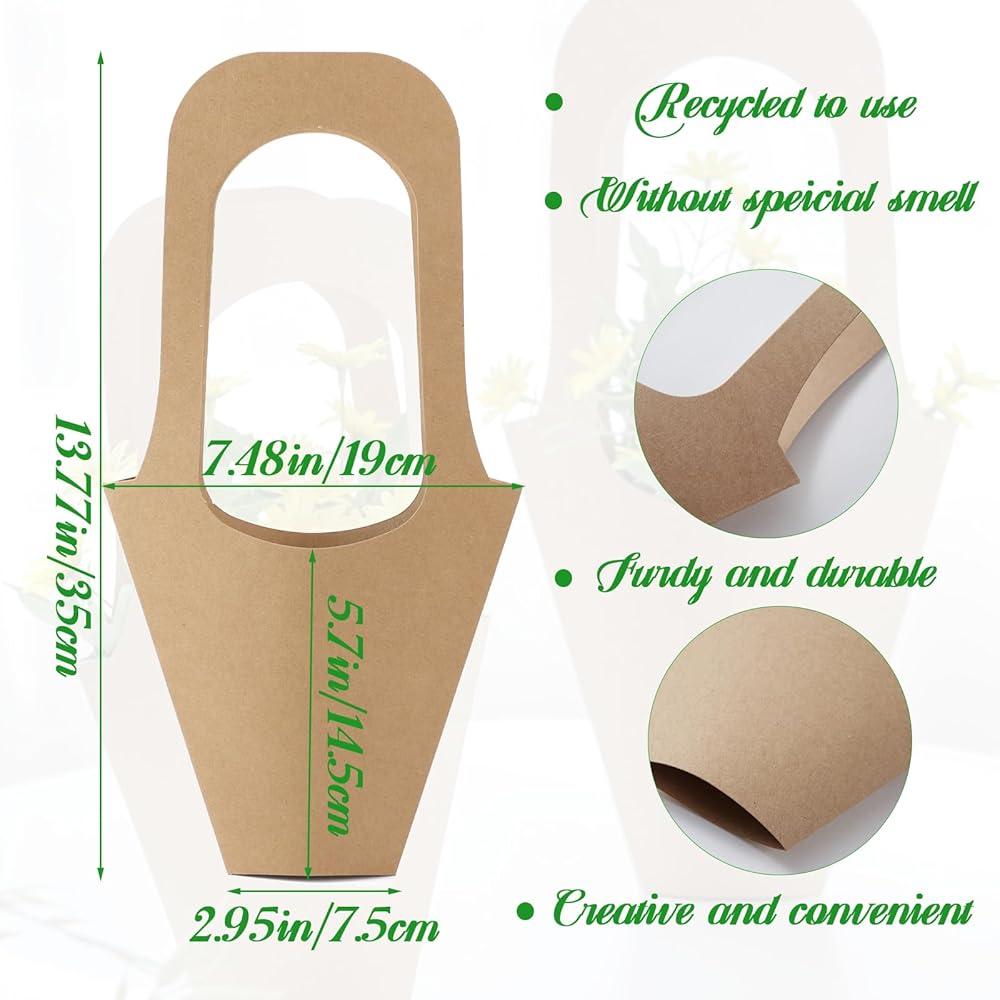 【Reliable Quality】The flower bags for bouquets are made of sturdy and thick kraft material,sturdy, safe and not easily broken or torn, lightweight and reliable, touch-friendly, suitable for different flowers, you can rest assured that use.