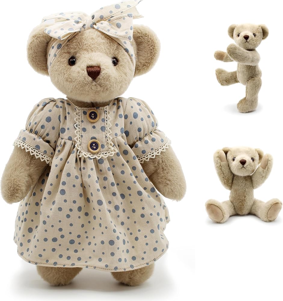 Jointed Teddy Bear Stuffed Animals Small Soft Plush Toy with Cloth (Blue 13Inch)