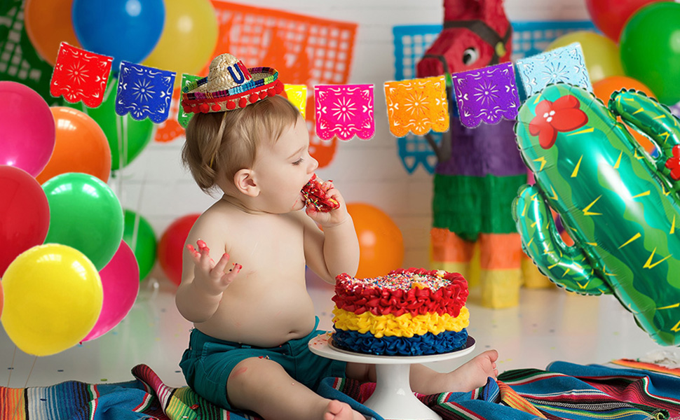 Fiesta 1st Birthday Decorations: Our decoration is very suitable for people who like mexican theme parties. The package includes all the things you need, balloons, cake topper, banner, you can use them to decorate your party