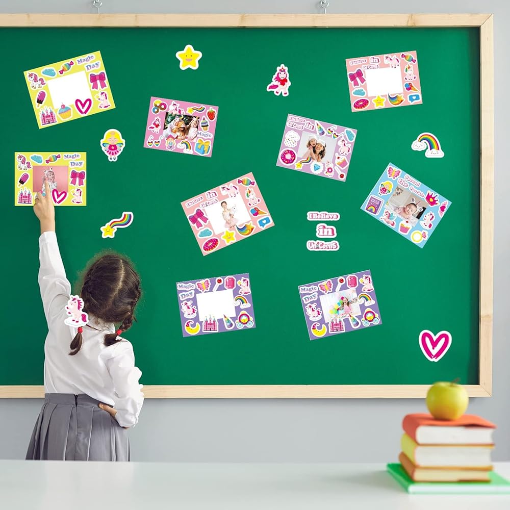 There are multiple bright and cute stickers for you to choose.Just choose the stickers you like and apply them on your picture frame