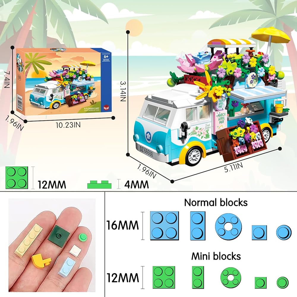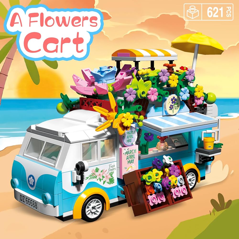 SATHIBI City Flower Vehicles Building Toy Set, Creative Mobile Flower Cart Shop Building Bricks Kits with LED Light, Model Collectible Van Gifts for Boys Girls Ages 6+ (621pcs)