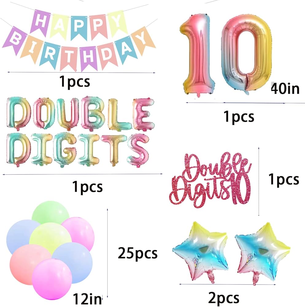 10th Birthday Party Decorations - Double Digits Cake Topper, Balloon Banner & More