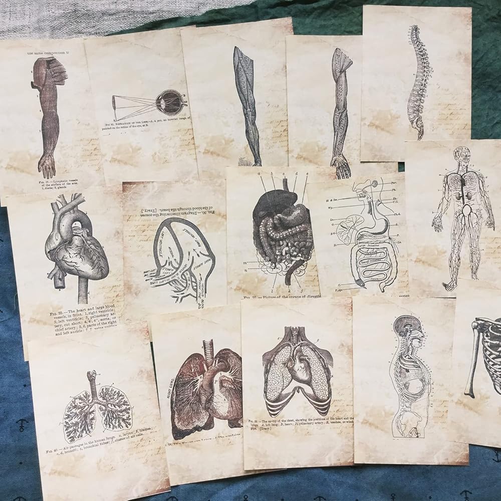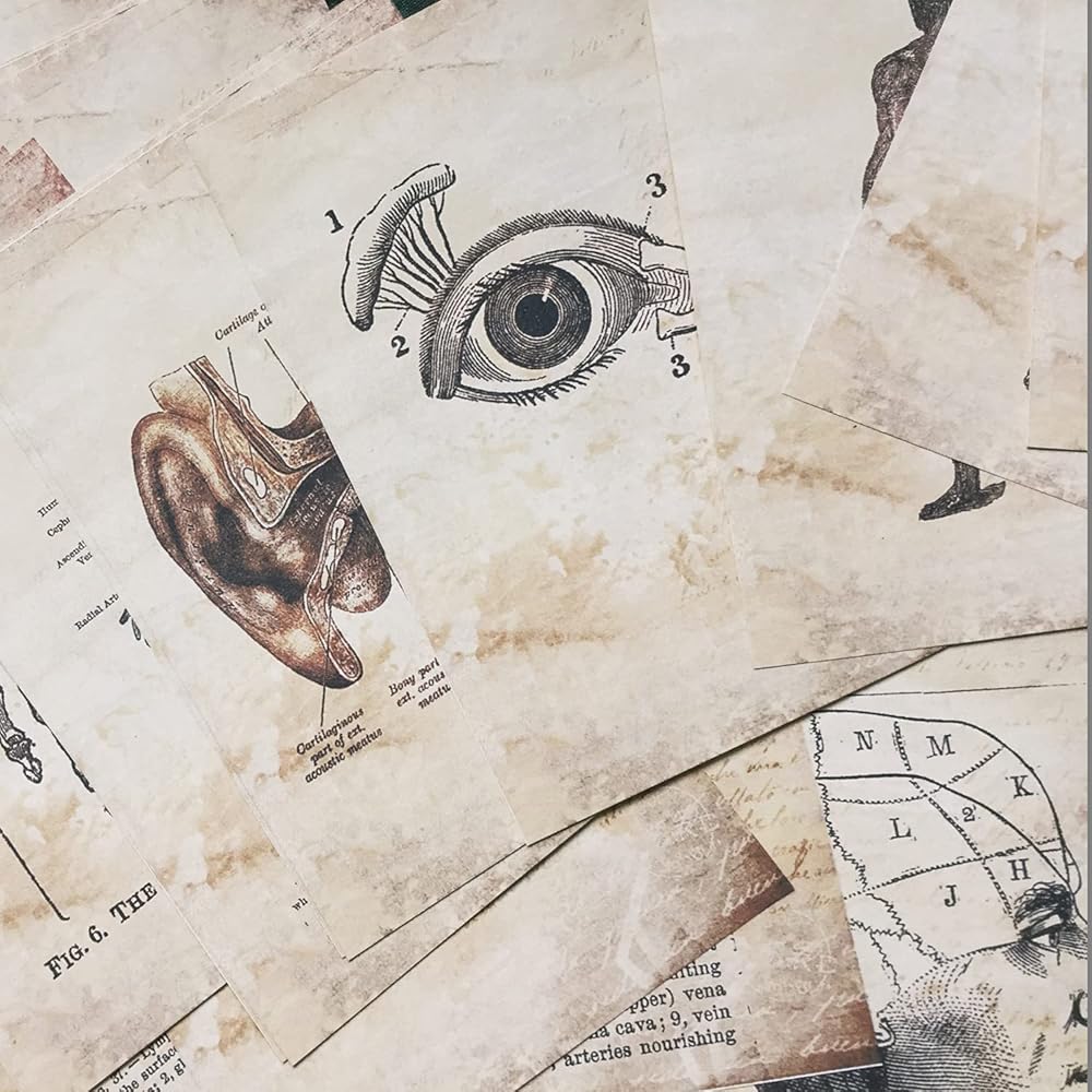 Vilikya Dark Academia Junk Journal Supplies, 54 Sheets Vintage Skull Scrapbook Paper for Scrapbook Kit, Hospital Theme Decoupage Paper for Room Decor Wall Collage Kit